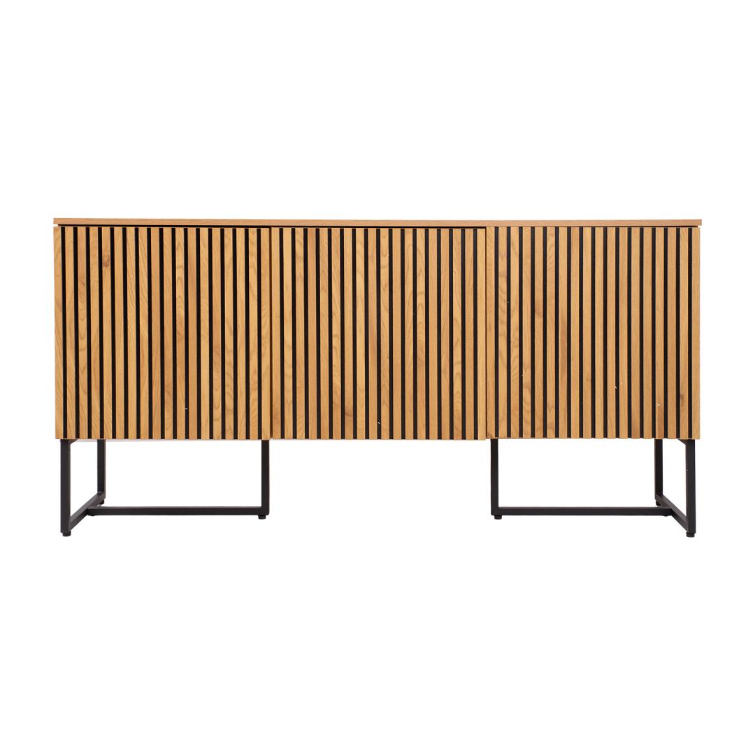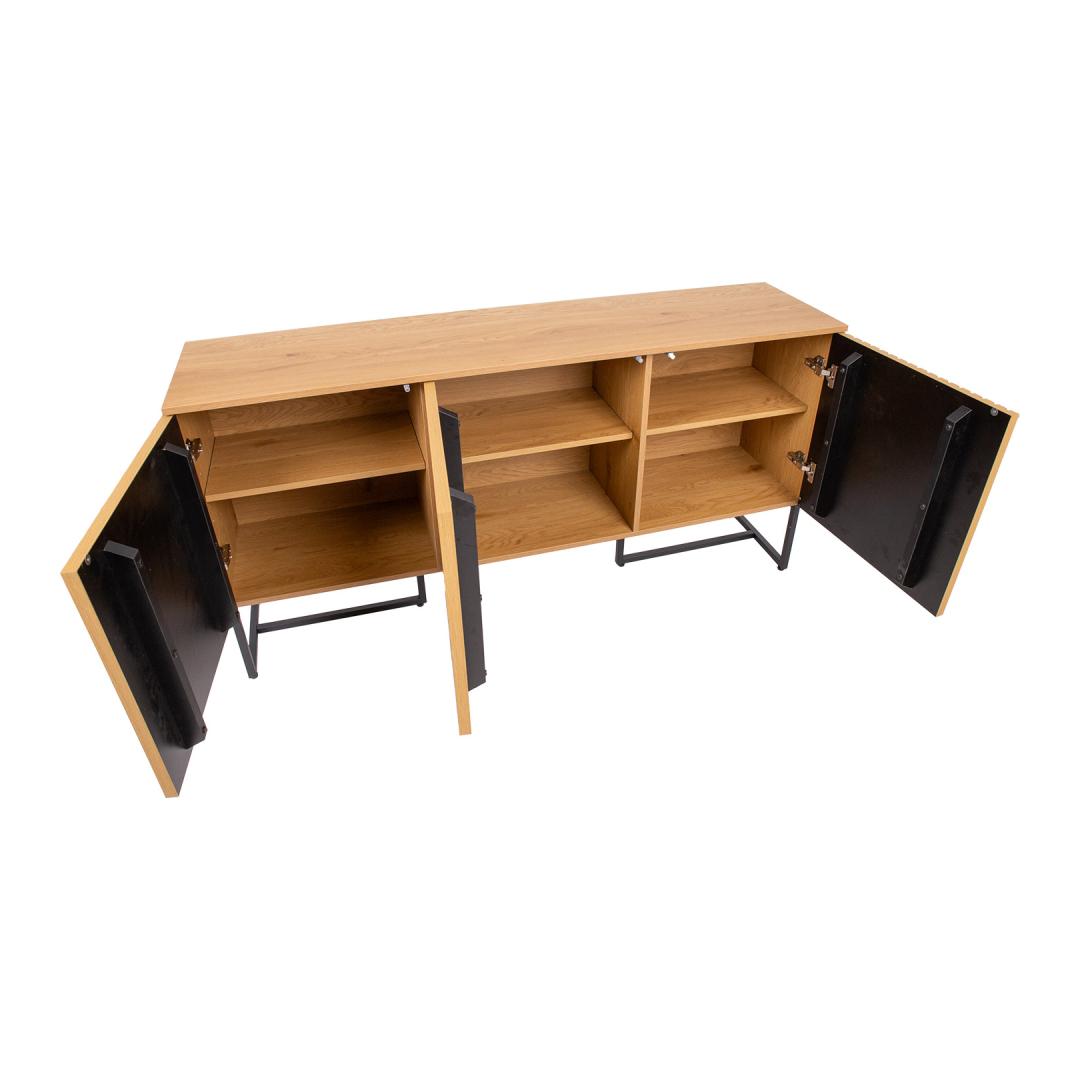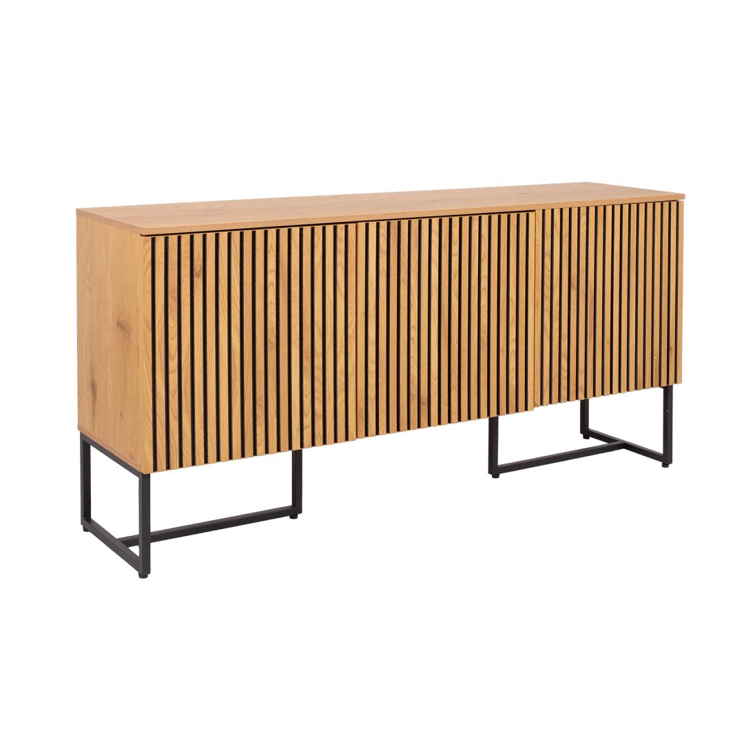 Kummut HAMPTON 3-uksega 160x40xH80cm, tammedekooriga melamiin. Kummuti pealmine plaat ja korpus on valmistatud tammedekooriga melamiinplaadist. Uksepaneele kaunistavad kitsad tammevärvi MDF liistud mustal taustal. Kummuti metallist alusraam on viimistletud musta pulbervärviga. Kummut HAMPTON 3-uksega 160x40xH80cm, tammedekooriga melamiin. Kummuti pealmine plaat ja korpus on valmistatud tammedekooriga melamiinplaadist. Uksepaneele kaunistavad kitsad tammevärvi MDF liistud mustal taustal. Kummuti metallist alusraam on viimistletud musta pulbervärviga.