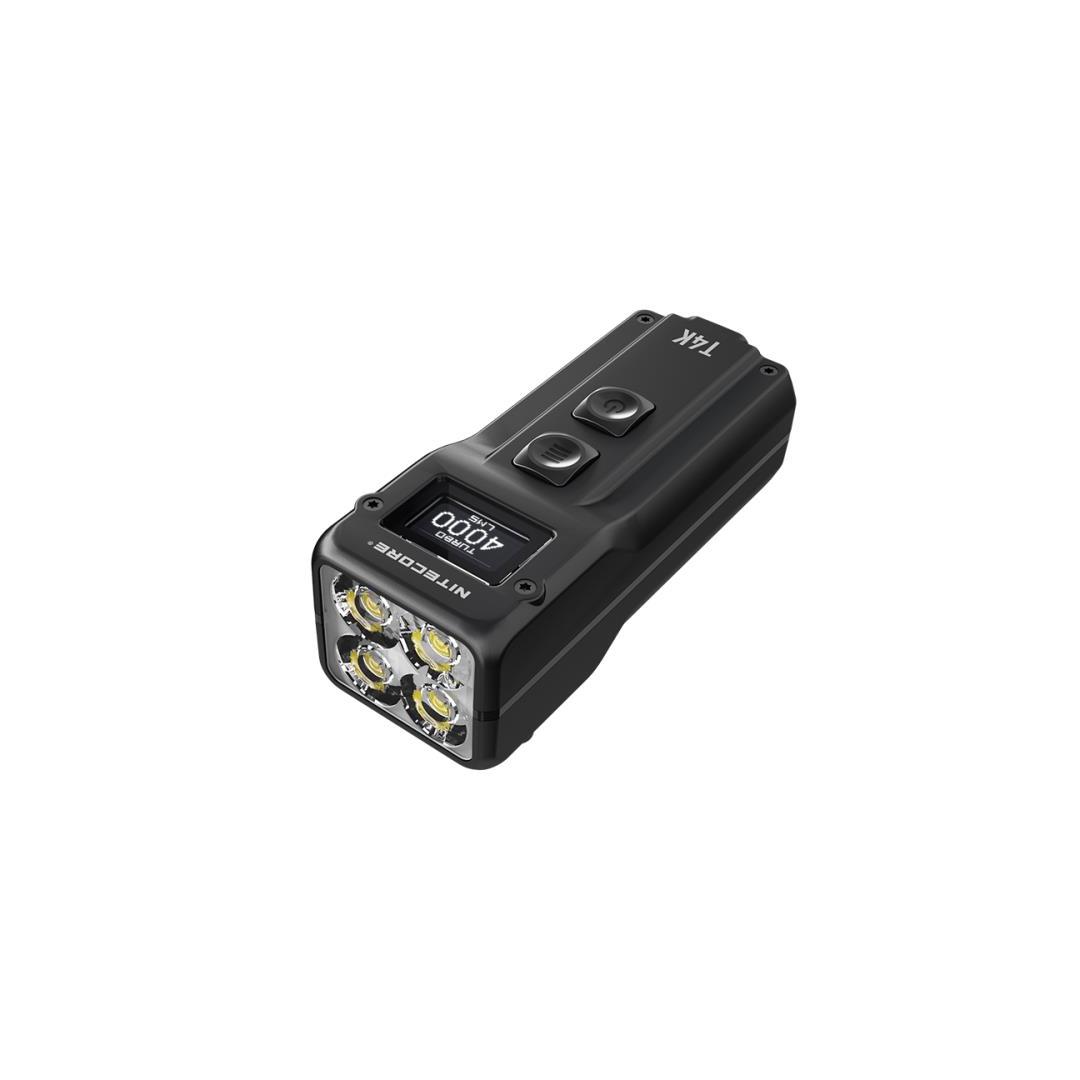 The Nitecore T4K keyring light has an incredible maximum output of 4000 lumens from the 4 x Cree XP-L2 V6 LEDs and is powered by a built-in, 1000mAh li-ion battery. The flashlight is rechargeable via a USB-C port at the base of the torch and comes with a USB-C to USB charging cable.