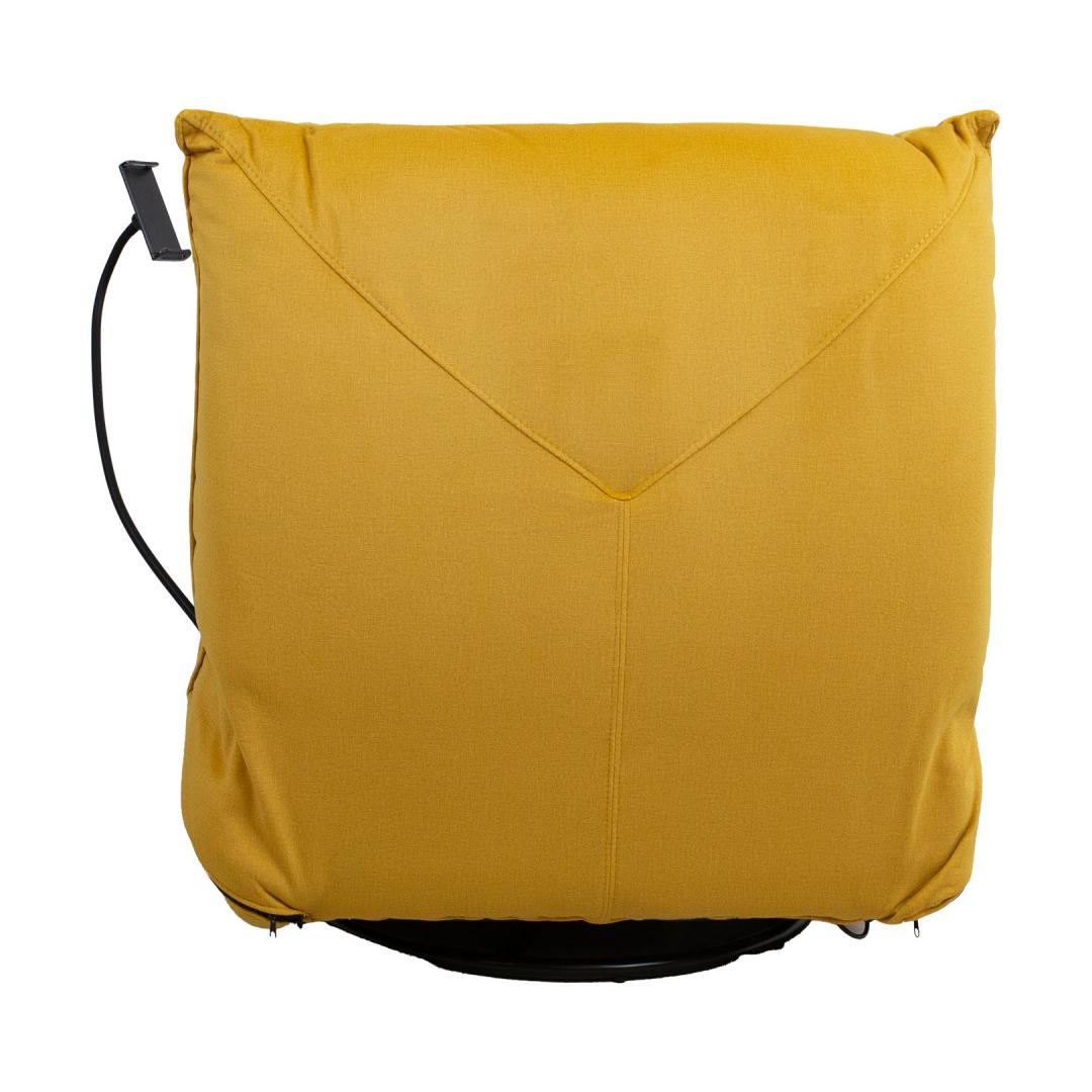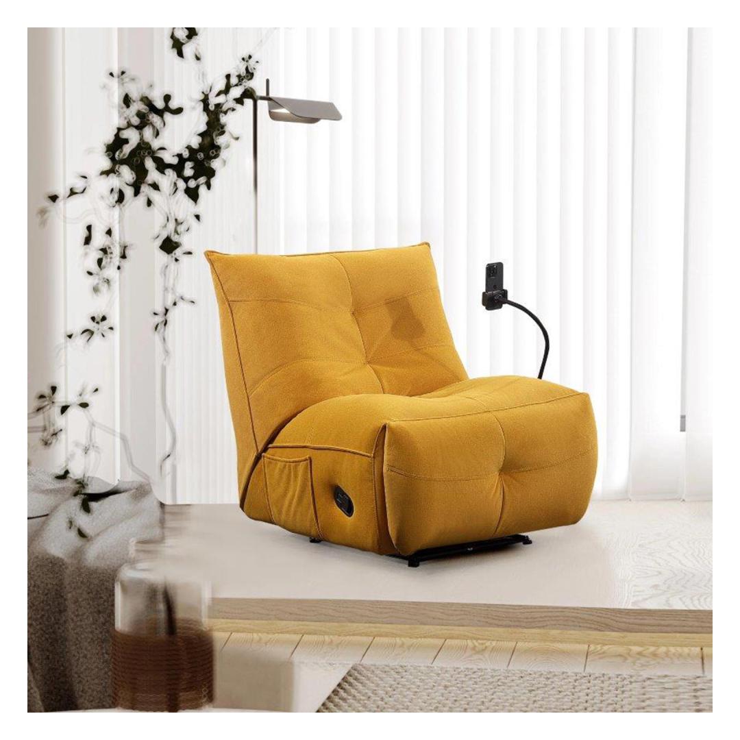 Recliner leisure chair WIN-WIN yellow. The perfect combination of comfort and functionality! The chair features a 360 ° swivel base and a glider mechanism. To elevate the footrest, pull the lever located on the right side of the chair upwards. By pressing the footrest down, it automatically locks into the initial position. When the footrest is raised, the backrest moves down under the influence of body weight. There is a flexible phone holder on the left side of the chair and a handy pocket on the right side. The frame of the chair is made of solid wood. Inside the seat, there is a pocket spring block. The seat and backrest are padded with polyurethane foam at 25-28kg/m³ density. The covering material is polyester fabric. The overall dimensions of the chair are 80x95xH90cm. Seat width 80cm, seat depth 60cm, seat height 49cm. Recliner puhketool WIN-WIN kollane.