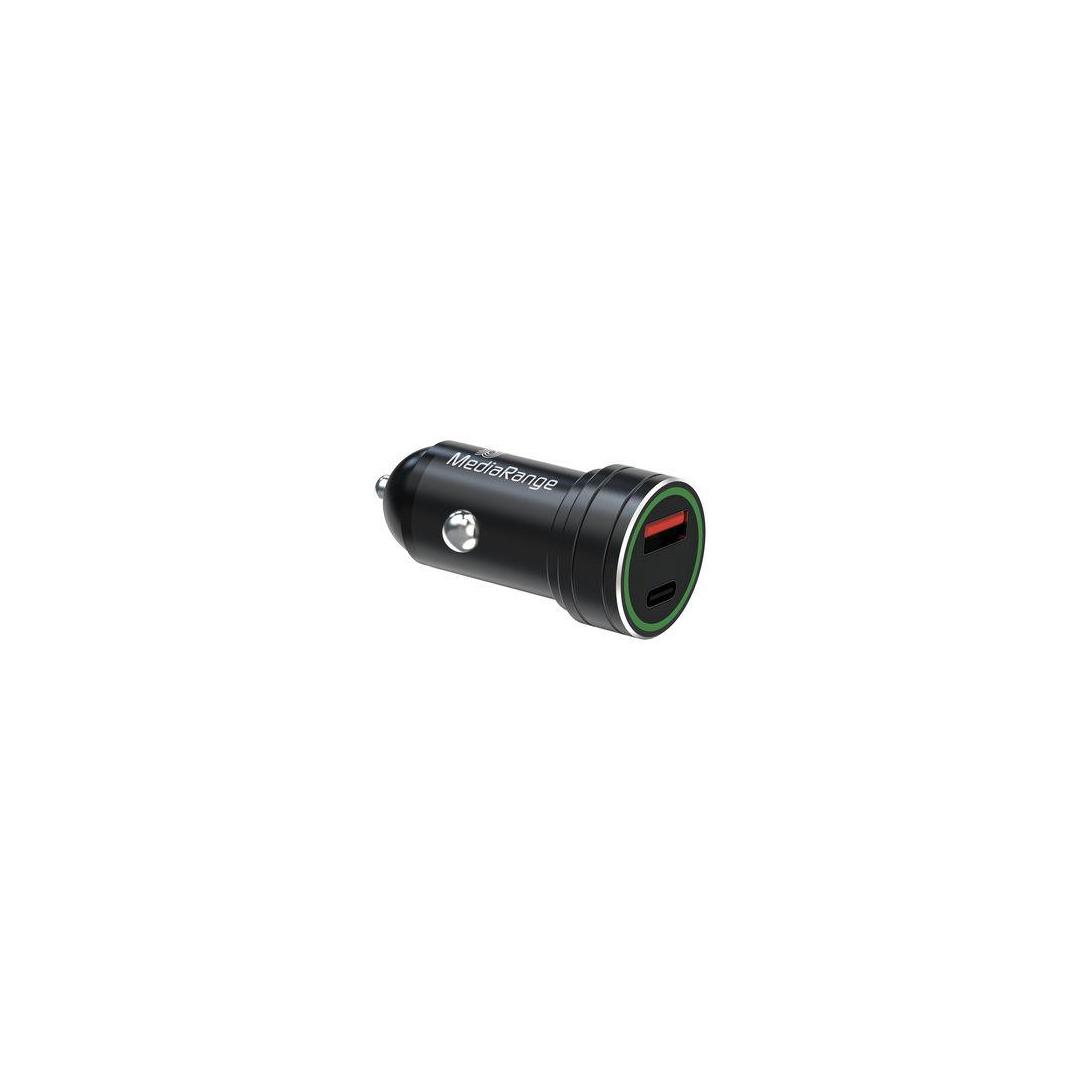 MediaRange 20W In-car charger with 1x USB-A and 1x USB-C® port, black aluminium housing