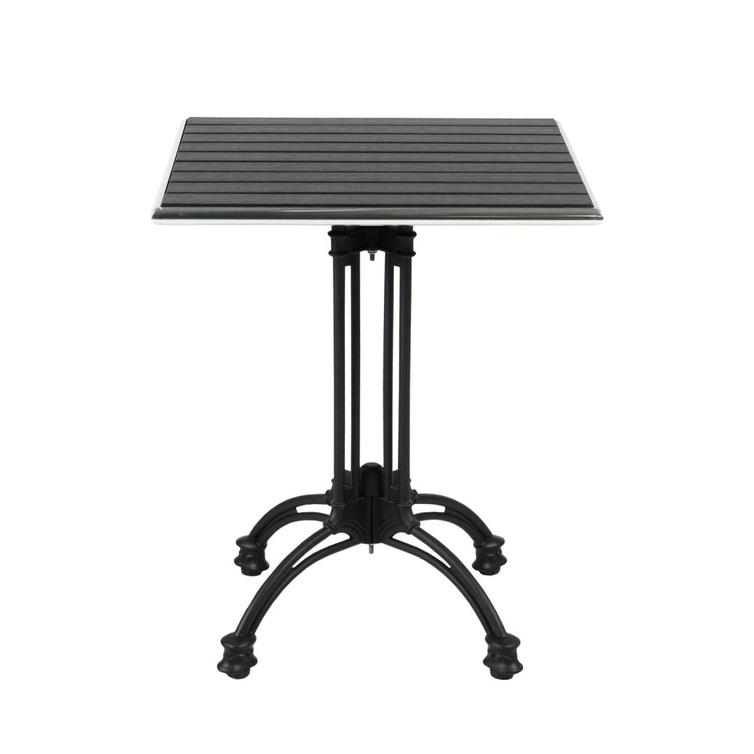 Table leg CAFE 61x61xH72cm. The table leg is made of aluminum and finished with black powder paint. Table top carrier 45x45cm. The maximum dimensions of a tabletop suitable for a table leg are 90x90cm. Table top fixing screws are not included. The product is weatherproof.