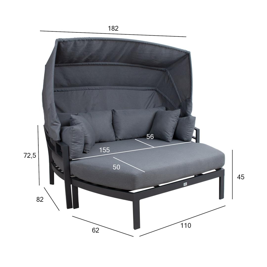 Sofa TOMSON with canopy, dark grey, 182x82xH72.5cm, aluminum
