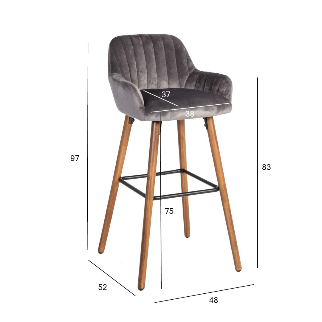 Bar chair ARIEL 48x52xH97cm, covering material: fabric, color: gray, beech wood legs