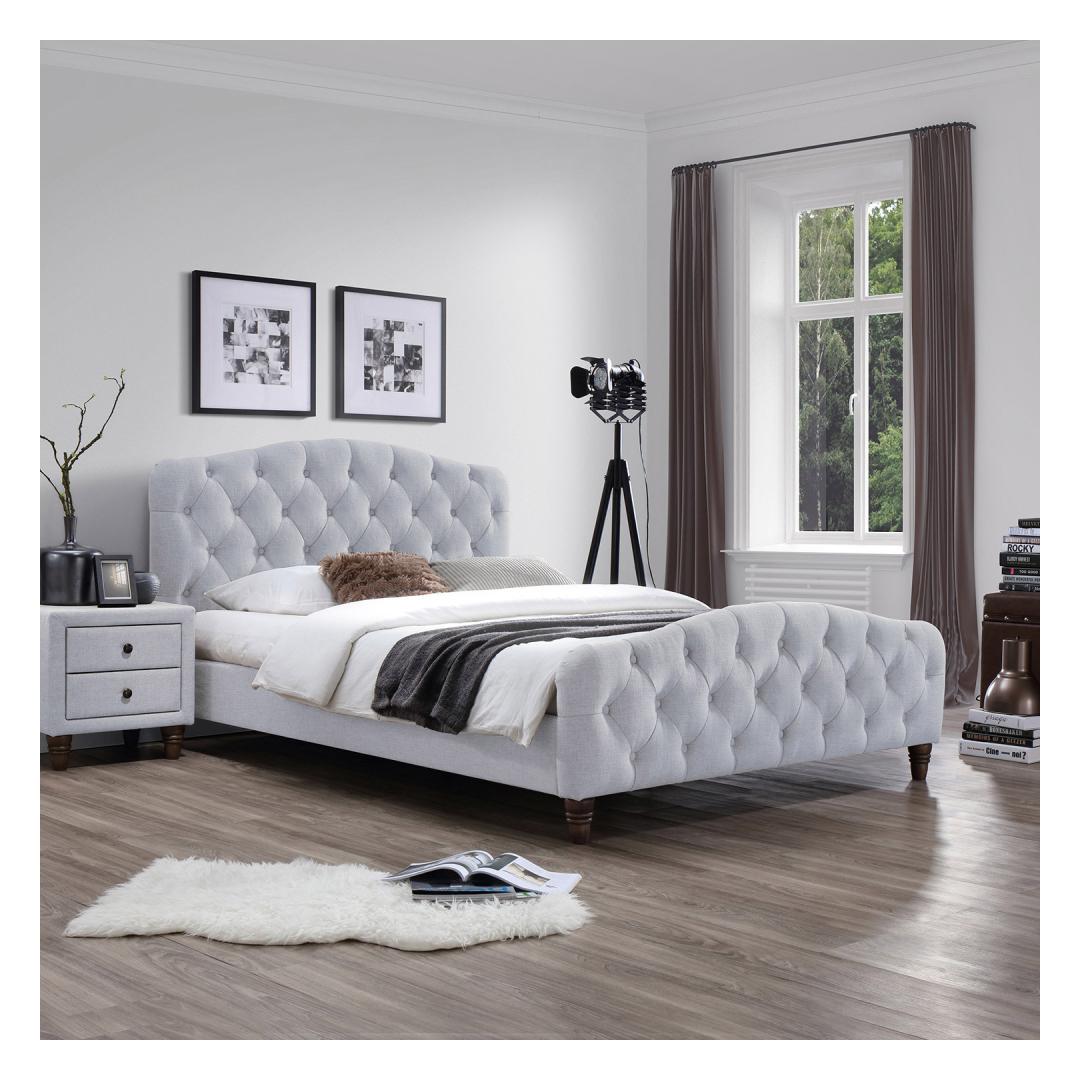 Bed SANDRA 160x200cm, with mattress HARMONY DELUX, light grey. PERFECT SLEEP BY HOME4YOU. The body of the bed is made of MDF board and covered with polyester fabric. The bed has brown solid wooden legs. The set includes a headboard, baseboards and a mattress. A high-quality spring mattress with stiffer suspension and a layer of natural latex is 30 cm high. The mattress is packed with deluxe-pocket suspension (2.3mm/firm). The light stretch fabric mattress cover is made of skin-friendly and soft cotton-polyester (fabric weight 410g/m2). The top layer of the mattress is natural latex, which is soft, elastic, air-permeable and regulates its own moisture content. In addition, the mattress has two different high-quality foam layers, which ensure maximum relaxation of the muscles and bones. The fabric, felt and wadding meet the international Oeko-Tex 100 standard. The mattress is packed in a roll to make it easier to transport. The mattress needs up to 2 hours to restore its original shape. Carefully remove the plastic wrap and place the mattress on top of the bed. The dimensions of the mattress are 160x200cm. The overall dimensions of the bed are 165x218.5xH104cm. Bed SANDRA 160x200cm, with mattress HARMONY DELUX, light grey. PERFECT SLEEP BY HOME4YOU. The bed frame is made of MDF board and covered with polyester fabric. The bed has brown solid wood legs. The set includes headboard, bed base slats and a mattress. The spring mattress is 30cm high. The firm natural latex mattress has packed deluxe pocket springs (2,3mm/firm). The top layer is natural latex, which helps you to fully relax by contouring your body shape to relieve tension and provide support. The mattress is covered with two different high-quality profiled foam layers which provide maximum muscle and skeletal relaxation. The stretch fabric cover is made of soft and skin-friendly cotton-polyester (weight 410g/m2). The fabric and felt comply with the international Oeko-Tex 100 standard. The mattress is packed in a roll to make it easier to transport. The mattress needs up to 48 hours to restore its original shape. Carefully remove the plastic bags and place the mattress on the bed. The mattress dimensions are 160x200cm. The dimensions of the product are 165x218,5xH104cm.