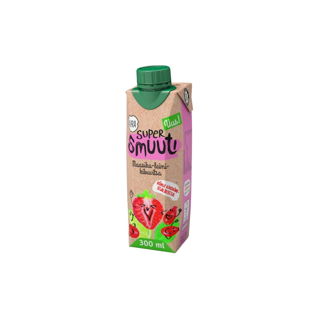 Banaanipüree (24%), õunapüree (21%), viinamarjamahl kontsentreeritud mahlast (21%), maasikamahl kontsentreeritud mahlast (13%), virsikupüree kontsentreeritud püreest (13%), laimimahl kontsentreeritud mahlast (4%), maisikiud (1,6%), kibuvitsapüree (1%), vesi, looduslik lõhna- ja maitseaine. Puuviljasisaldus 97% Maasika magusus ja laimi hapukas värskus saavad supersmuutis meeldiva tasakaalu, mida täiendab kibuvitsapüree. Täiuslikult küpsenud puuviljadest valmistatud supersmuutisse ei ole lisatud suhkrut ega säilitusaineid – see sisaldab vaid looduslikult esinevaid suhkruid. See on kõrge kiudainesisaldusega ja täisväärtuslik valik kosutavaks hommikusöögiks või kiireks vahepalaks.