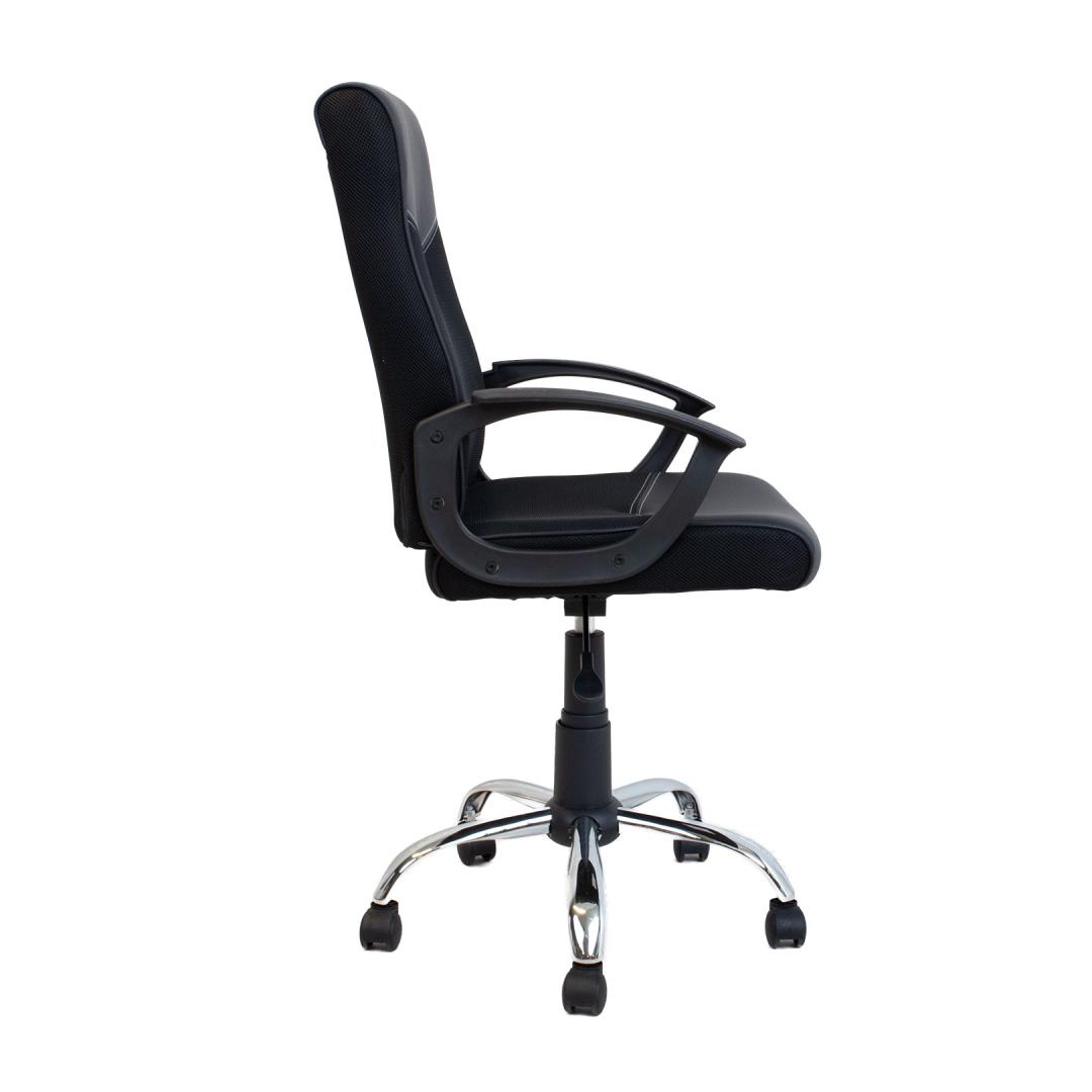 Tooli kergelt polsterdatud iste ja seljatugi on kaetud kunstnaha ja polüestervõrkkangaga.