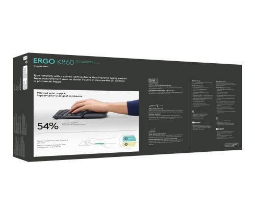 LOGITECH ERGO K860 Keyboard wireless 2.4 GHz Bluetooth 5.0 Nordic (PAN)