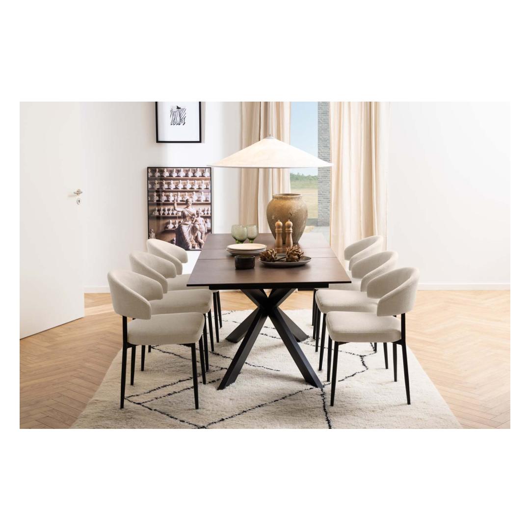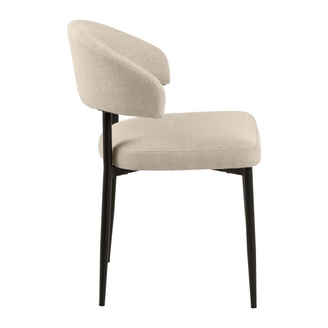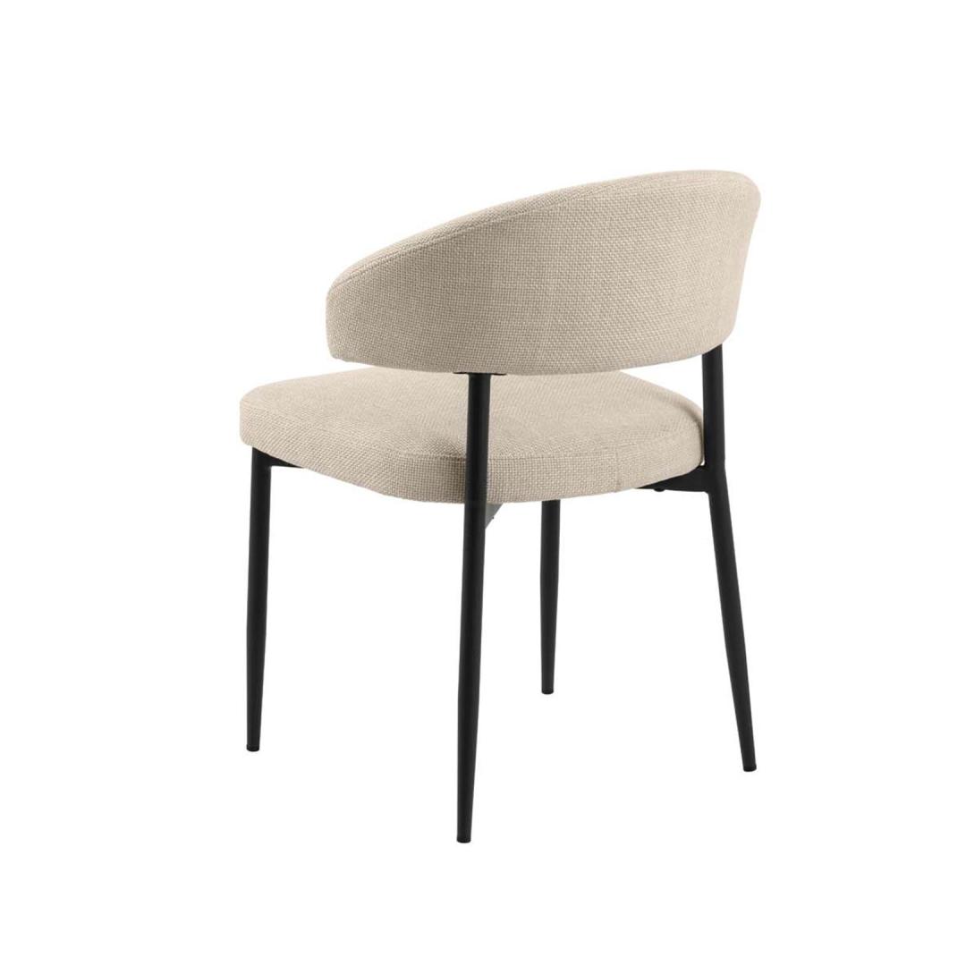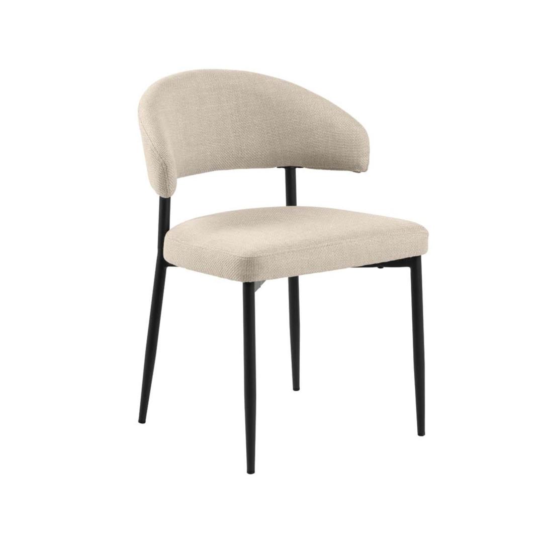 Enliven your dining area with this elegant dining chair. The inspiring chair is designed with rounded shapes. The chair has a distinctive space between the back and seat that makes it stand out. The strong seat will keep you comfortable. The dimensions are 56x55xH77cm. CARE: Maintenance is limited to vacuuming and stain removal. Cleaning off stains should be carried out with caution. Test stain removers on a less visible area first. Never use solvents. Do not place the furniture in direct sunlight. Base: Use a cloth firmly wrung in mild soapy water for daily cleaning. To avoid rust, wipe dry. Do not scuff the surface with hard objects.