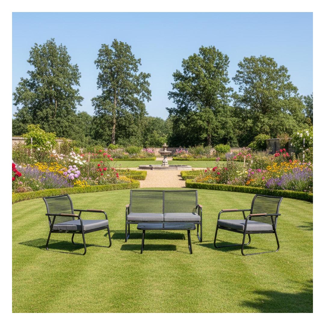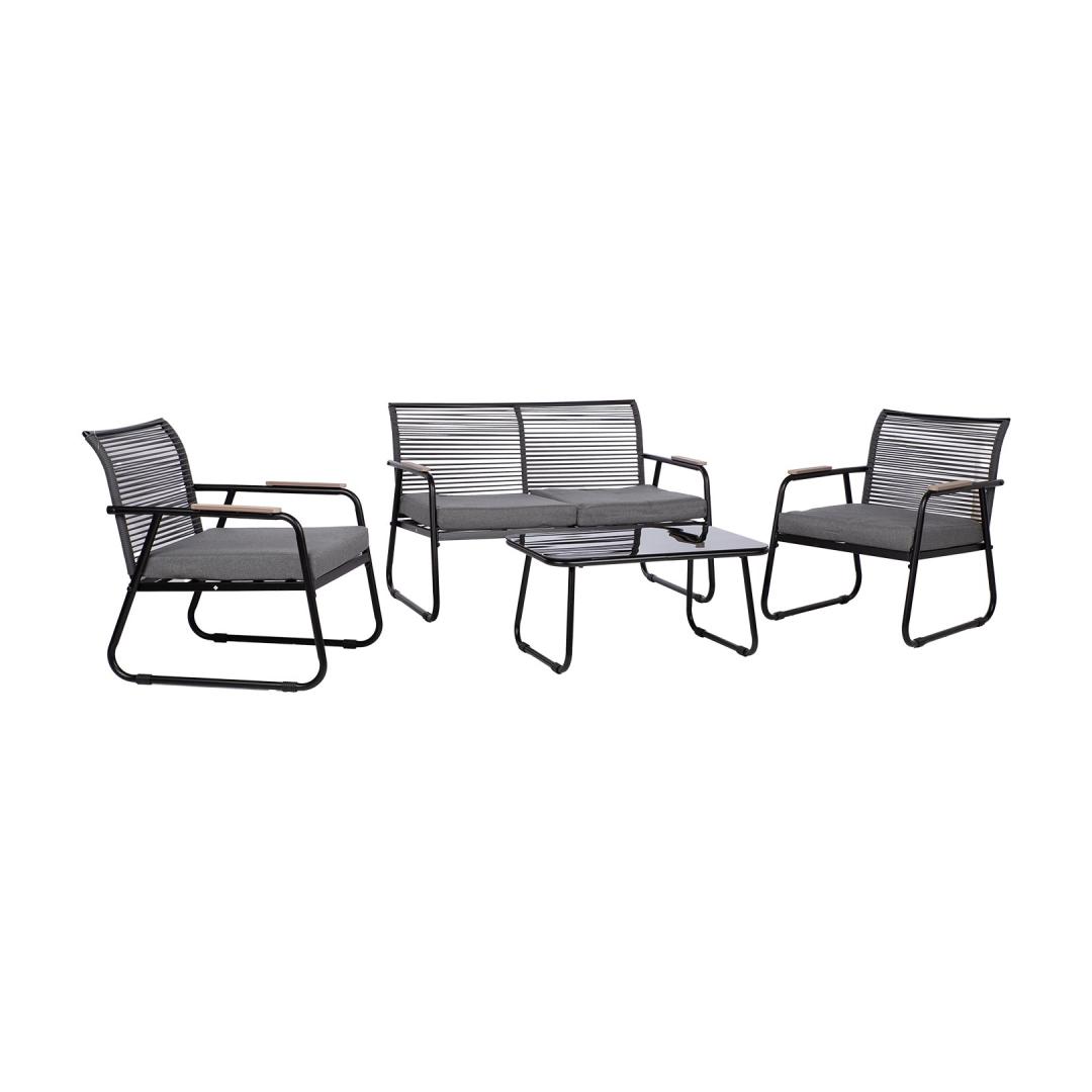 Aiamööblikomplekt MACOS laud, diivan ja 2 tooli, hall/must