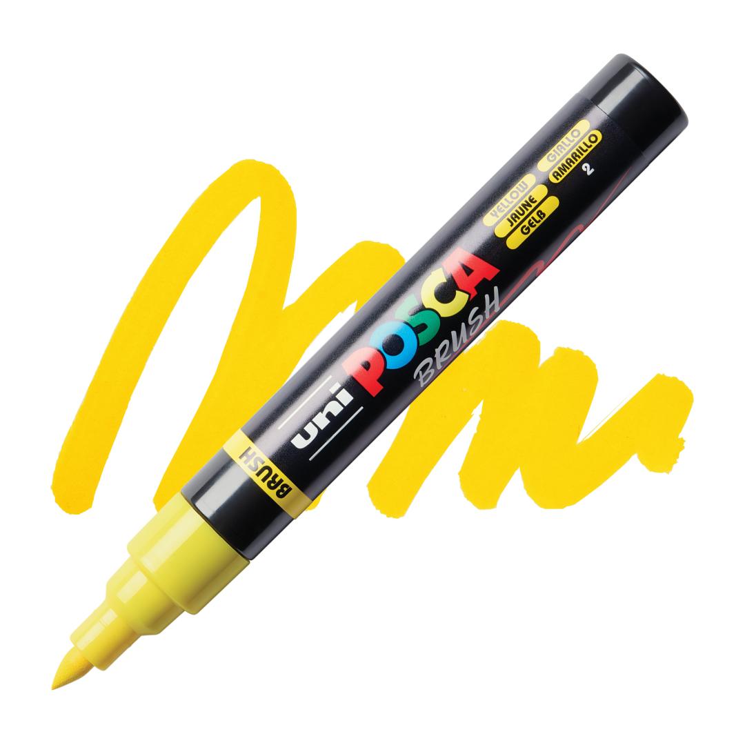 UNI Posca PC5BR paint marker, yellow brush tip, 1-4mm