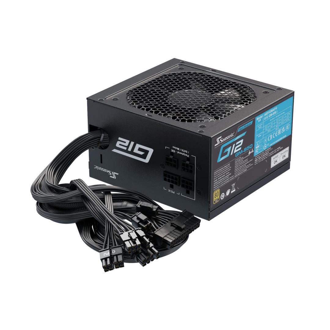 Seasonic Focus G12 GM. Total power: 850 W, AC input voltage: 100 - 240 V, Input current: 10 A. Motherboard power connector: 20+4 pin ATX, Motherboard power cable length: 55 cm, Peripheral (Molex) power cable length: 690 mm. Purpose: PC, Power supply unit (PSU) form factor: ATX, 80 PLUS certification: 80 PLUS Gold. Product colour: Black, Cooling type: Active, Fan diameter: 12 cm. Cables included: AC, PCIe, Peripheral (Molex), SATA