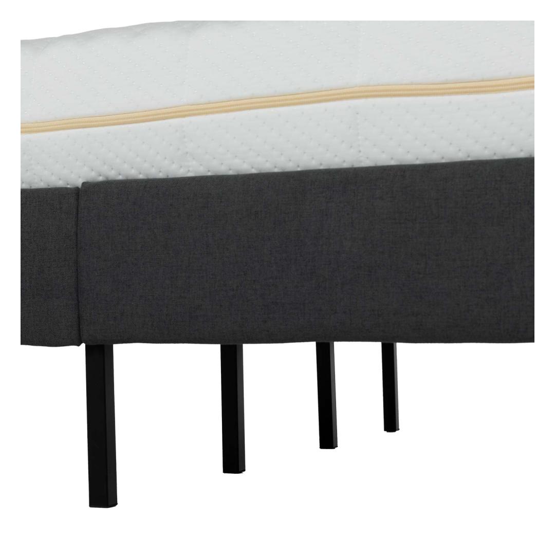The bed frame is made of MDF board and covered with polyester fabric.