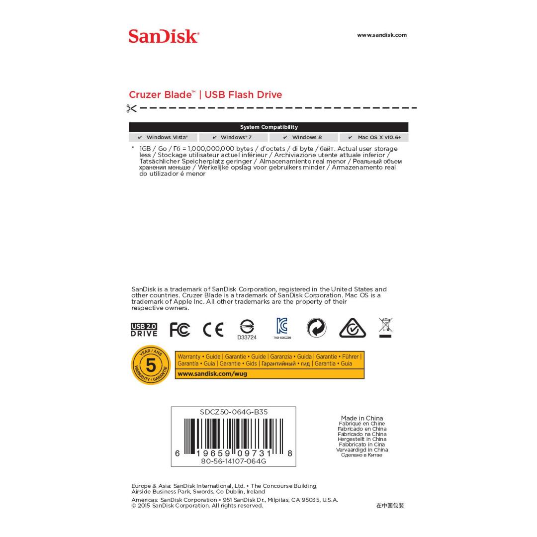 MEMORY DRIVE FLASH USB2 64GB/SDCZ50-064G-B35 SANDISK