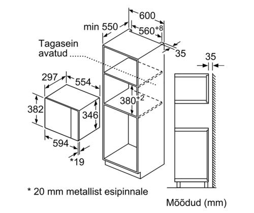 Bosch, 20 L, 800 W, valge - Integreeritav mikrolaineahi