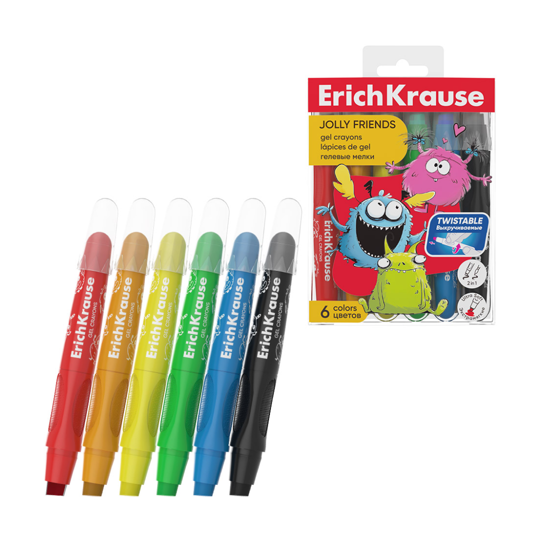 Gel crayons ErichKrause Jolly Friends, 6 colors