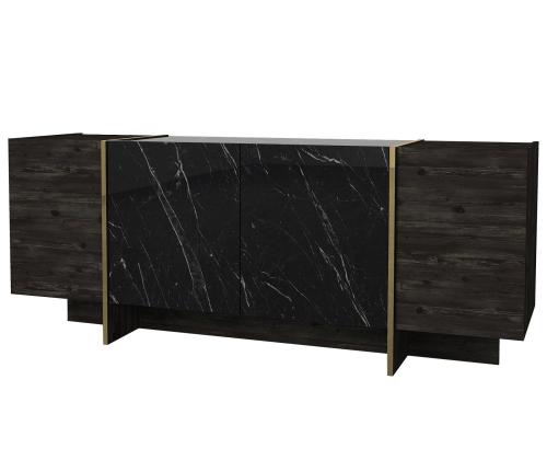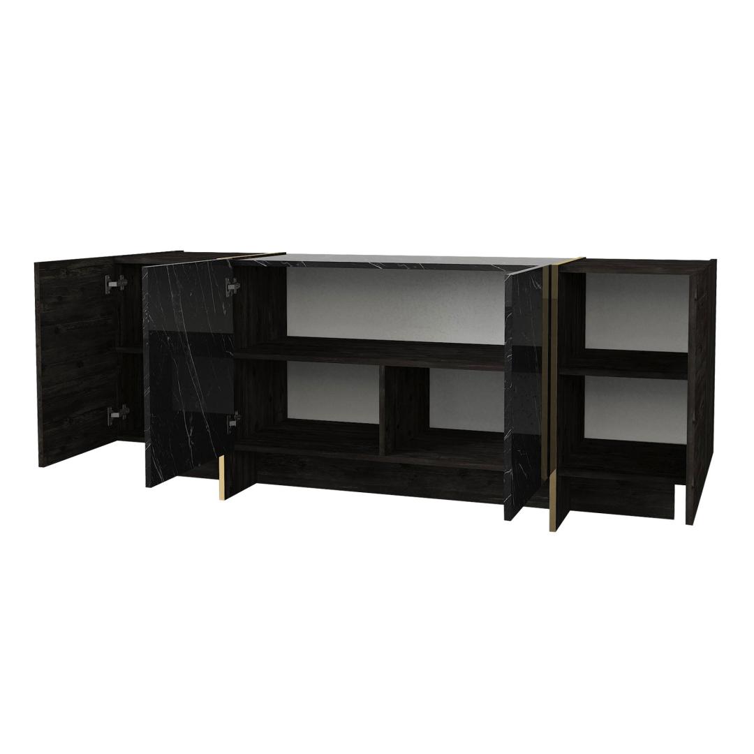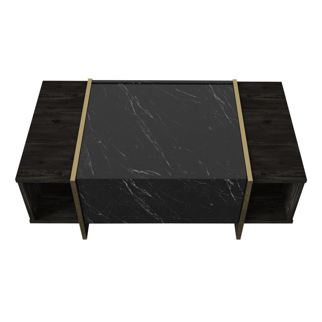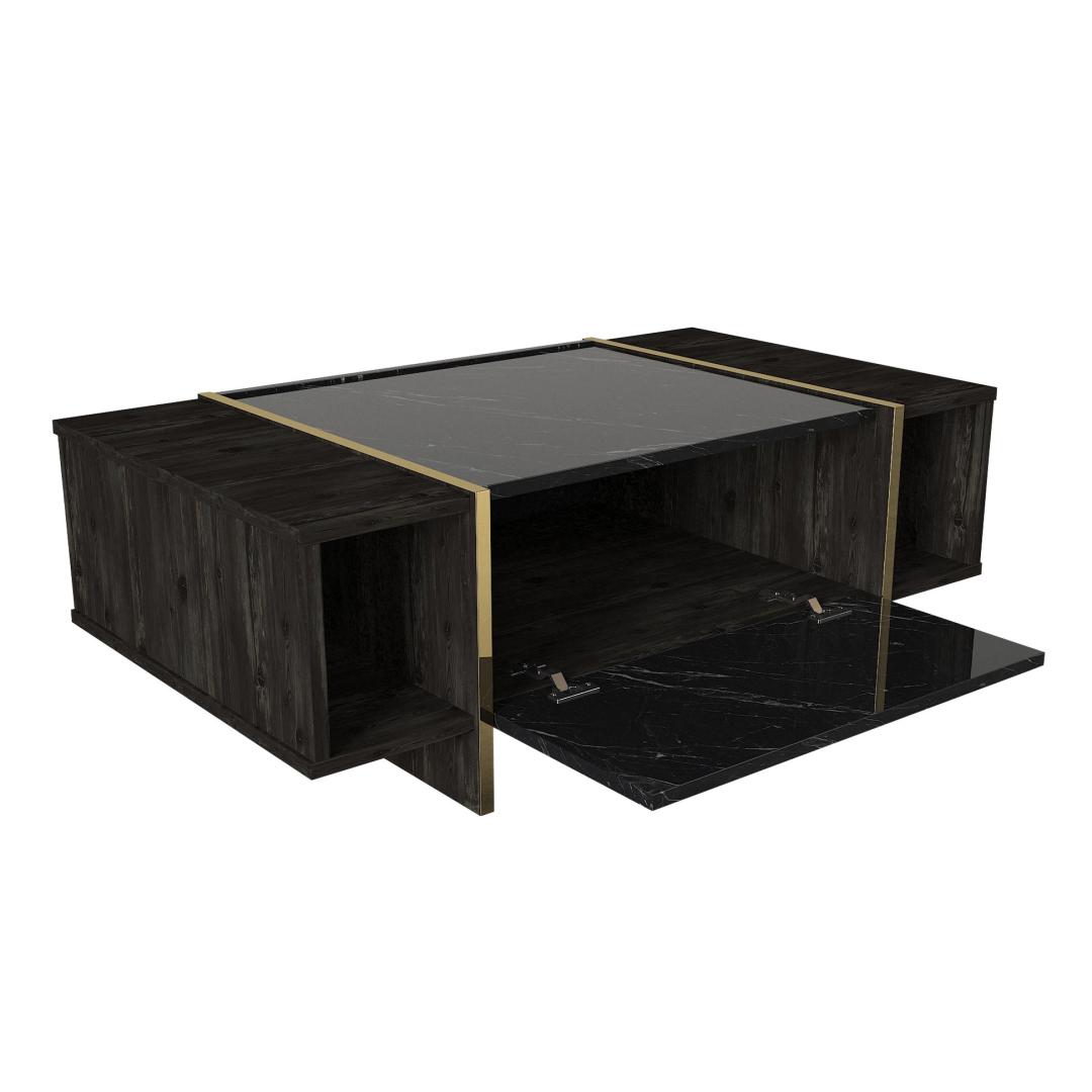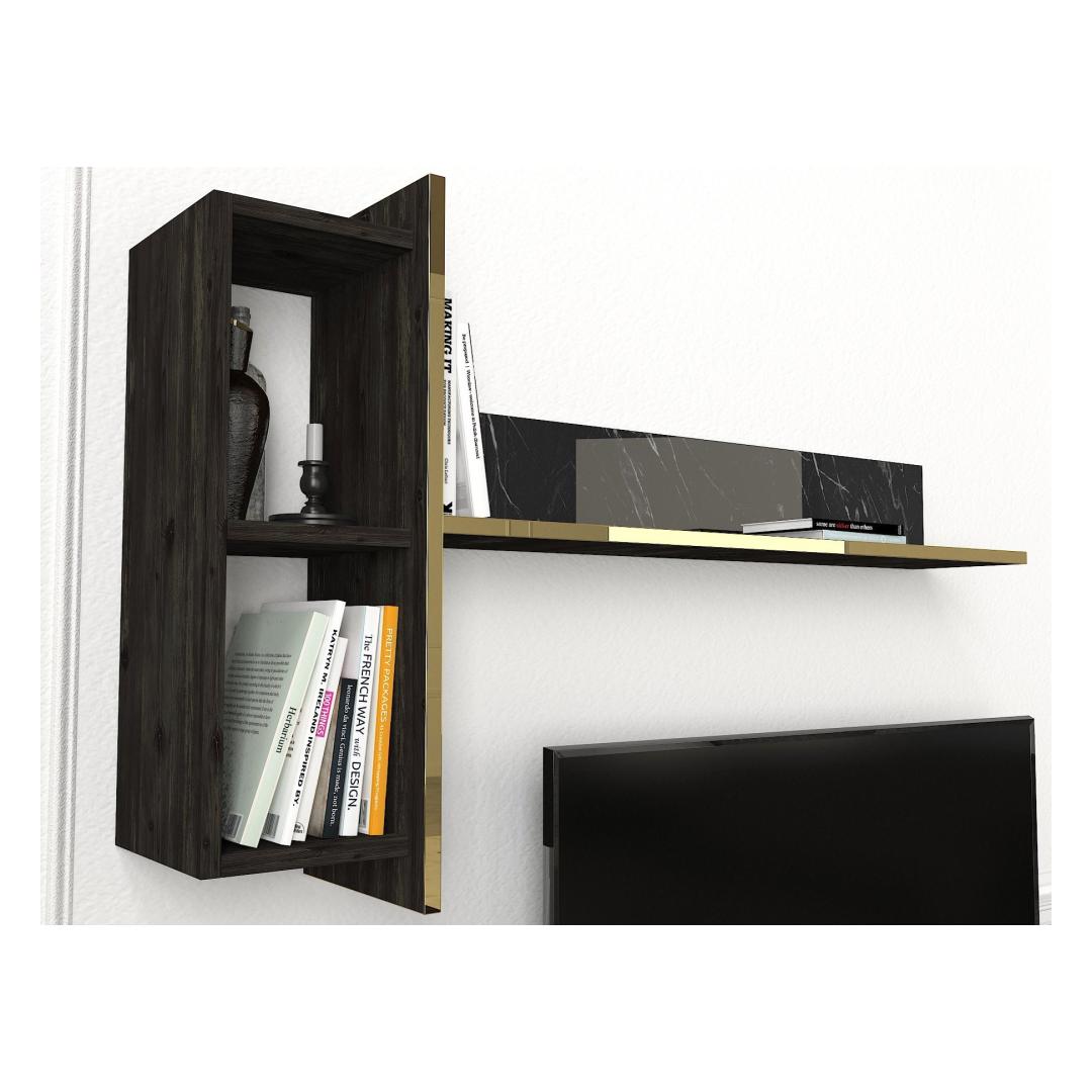 Muuda oma elutuba luksuslikuks pelgupaigaks meie suurepärase elutoa mööblikomplektiga. See komplekt on valmistatud 100% melamiiniga kaetud puitlaastplaadist, mis õhkab elegantsust ja elegantsust. Tõstke oma elutuba kõrgemaleMeie elutoa mööblikomplekt on oma elegantse disaini ja laitmatu käsitööga stiili ja mugavuse kehastus. Olenemata sellest, kas korraldate koosviibimist või naudite kodus rahulikku õhtut, see komplekt loob täiusliku atmosfääri mis tahes sündmuseks.Võrratu kvaliteetMeie mööblikomplekt on valmistatud 18 mm paksusest melamiiniga kaetud puitlaastplaadist, mis on ehitatud kestma. See on vastupidav kriimustuste, plekkide ja niiskuse suhtes, tagades, et see säilitab oma ilu aastaid. Monitoorne ja funktsionaalneSee komplekt sisaldab mitmeotstarbelist lauda, televiisorikomplekti ja konsooli, mis pakub piisavalt ruumi kõigi oluliste asjade hoidmiseks. Arvukad riiulid ja täiendavad hoiuvõimalused muudavad teie elutoa korrastatuna ja segadusteta hoidmise lihtsaks. Elektilisuse puudutusMeie elutoa mööblikomplekt, mis on varustatud musta ja kuldse värvi uimastava kombinatsiooniga, lisab igale ruumile külluslikkust. Elegantne disain ja luksuslik viimistlus teevad sellest väljapaistva eseme, mis avaldab külalistele muljet ja jätab püsiva mulje. Tehnilised üksikasjad:Kohvilaua suurus: Laius: 103. 8 cm, kõrgus: 37. 3 cm, sügavus: 60 cm.Külgriiuli laius: 19. 5 cmJala kõrgus: 10 cmTelerikapi suurus: Laius: 180 cm, kõrgus: 45 cm, sügavus: 32. 3 cmRiiulide kogupikkus: Laius: 121. 6 cm, kõrgus: 70 cm, sügavus: 24. 8 cmKülgmised riiulid: Laius: 19,8 cm, kõrgus: 60 cm, sügavus: 22 cm.Konsooli suurus: Laius: 180 cm, kõrgus: 75. 5 cm, sügavus: 46. 6 cmKapi kõrgus: 60 cmJalgade kõrgus: 15,5 cm Värv: Black Gold
