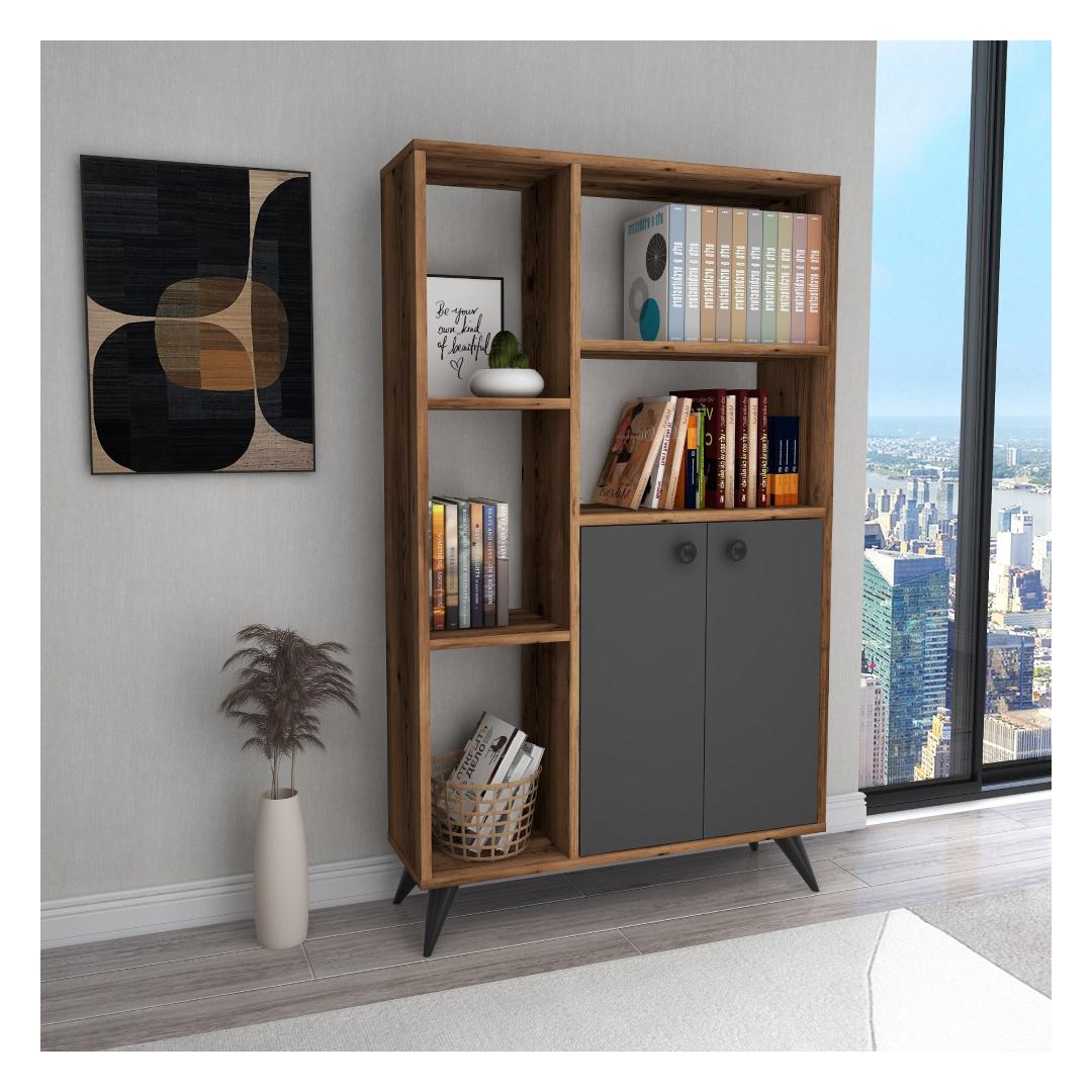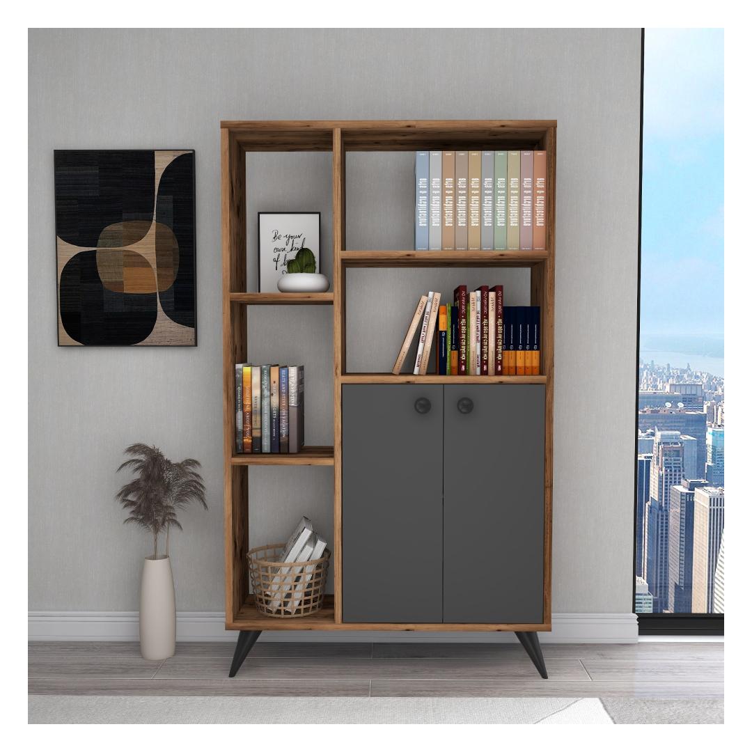 Raamaturiiul Meldan - Light Walnut, Anthracite