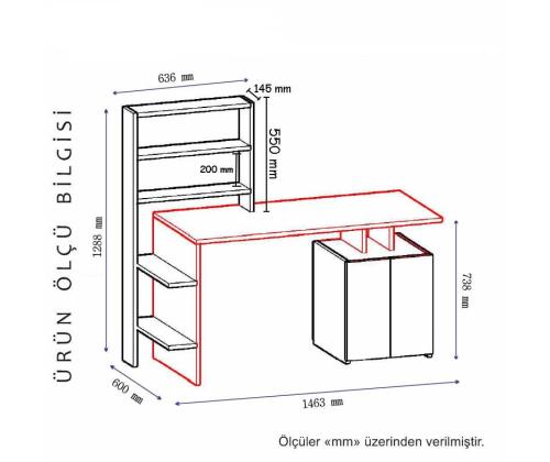 Study Desk Size: Width: 146,3 cm Height: 73,8 cm Depth: 60 cm