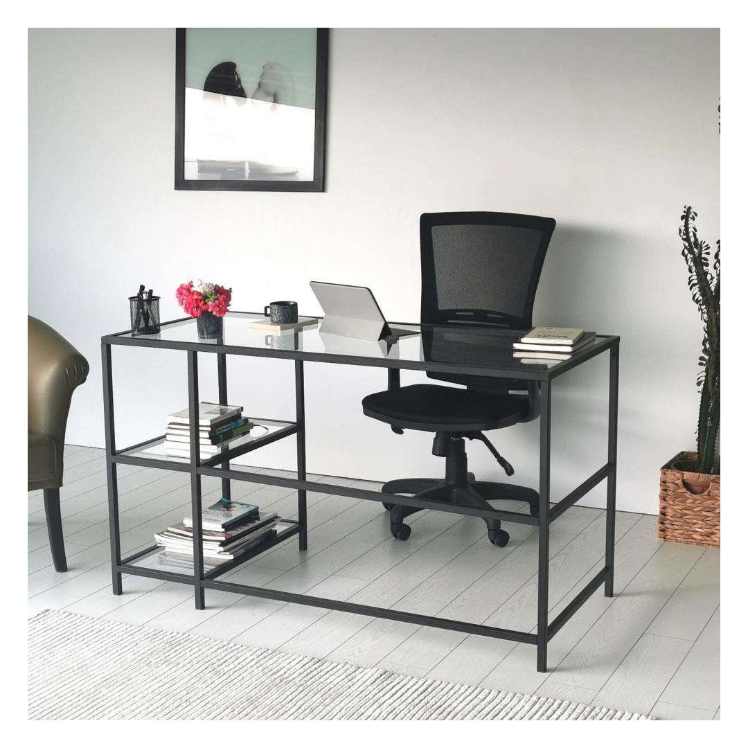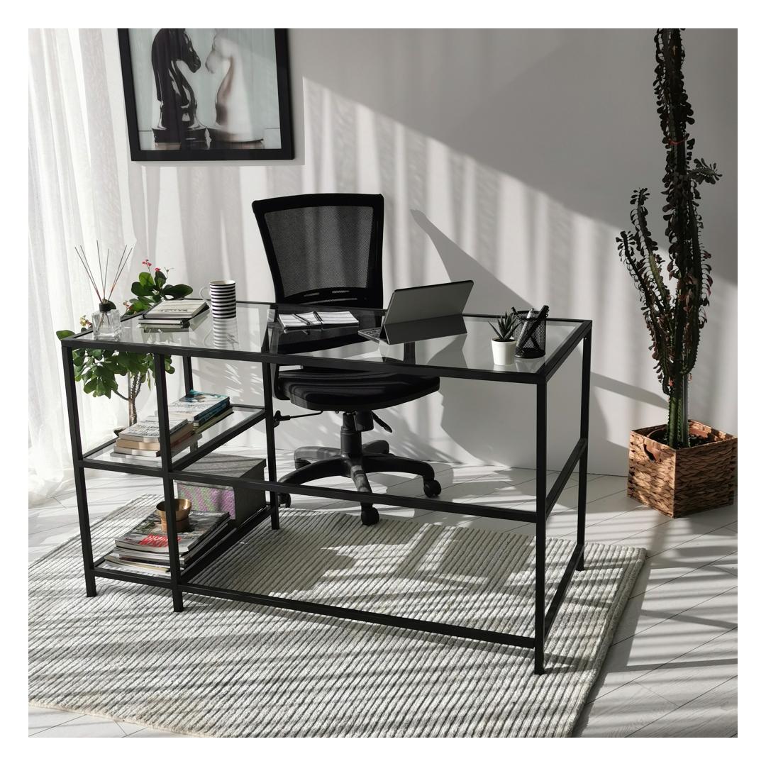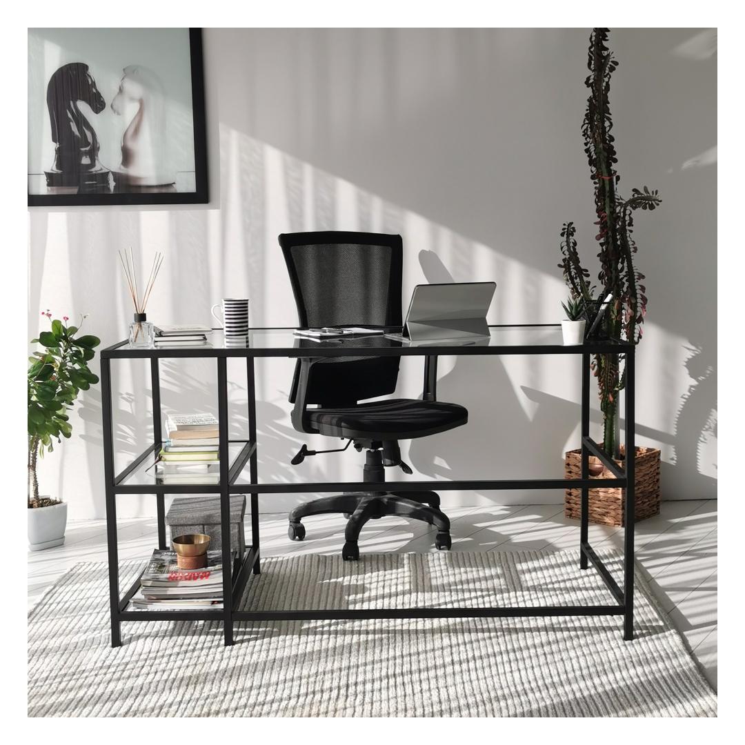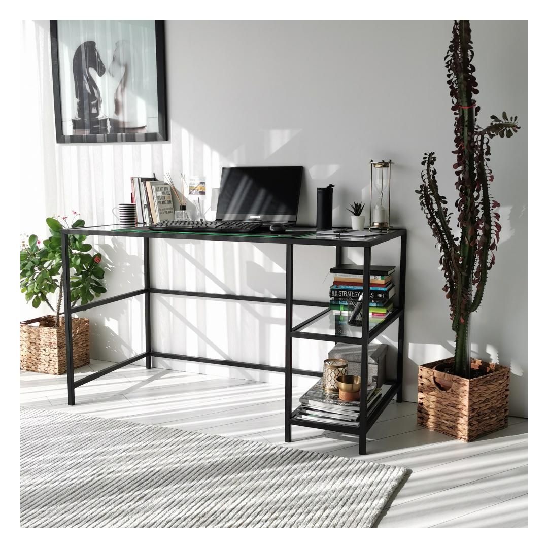 Loo stiilne ja funktsionaalne tööruum meie moodsa töölauagaMuutke oma õpperuum kaasaegseks ja inspireerivaks ruumiks meie elegantse ja keerulise õppelaua abil. See 100% karastatud klaasist ja tugevast metallraamist valmistatud töölaud ei ole mitte ainult visuaalselt uimastav, vaid ka vastupidav. Kõrgendage oma tööruumi karastatud klaasiga4 mm paksune karastatud klaasist töötasapind lisab teie tööruumile elegantsust, pakkudes samal ajal siledat ja vastupidavat pinda kõigi teie töövajaduste jaoks. Läbipaistvus loob ruumi illusiooni, mis muudab teie ruumi suuremaks ja avatumaks. Rikkalik hoiustamine ja organiseerimineSuurepärase 130 cm laiuse ja mitme riiuliga pakub meie õppetöölaud rohkelt hoiuvõimalusi teie raamatute, kirjatarvete ja muude oluliste asjade jaoks. 30 cm laiune riiul pakub mugavat kohta oma lemmikdekoori esemete esitlemiseks või sageli kasutatavate esemete käeulatuses hoidmiseks. Versatiivne ja ruumi säästev disainSee töölaud on disainitud nii, et maksimeerida teie ruumi. Seda saab hõlpsasti seinale kinnitada, tekitades hõljuvat efekti, mis mitte ainult ei säästa põrandapinda, vaid lisab teie tuppa ka kaasaegsuse. Selle tööstuslikust inspiratsioonist inspireeritud raam lisab teie tööruumile ainulaadset võlu, muutes selle teie kodu keskpunktiks. Tehnilised üksikasjad:Toote tüüp: Toode on mõeldud kasutamiseks, kui see ei ole vajalik, kuid see on võimalik: TöölaudMaterjal: Materjal: Materjal: Materjal: Materjal: Materjal: Materjal: Materjal: materjal: 100% karastatud klaas (4mm paksus), 100% metallraam.Mõõdud: Laius: 130cm, kõrgus: 75cm, sügavus: 60cm.Riiuli laius: 30cmVärv: MustKontseptsioon: Kaasaegne - uudsus, tööstuslikElustage oma tööruum meie moodsa töölaua abil ja kogege stiili ja funktsionaalsuse täiuslikku segu. Tellige kohe ja looge tööruum, mis inspireerib tootlikkust ja loovust. Värv: Black