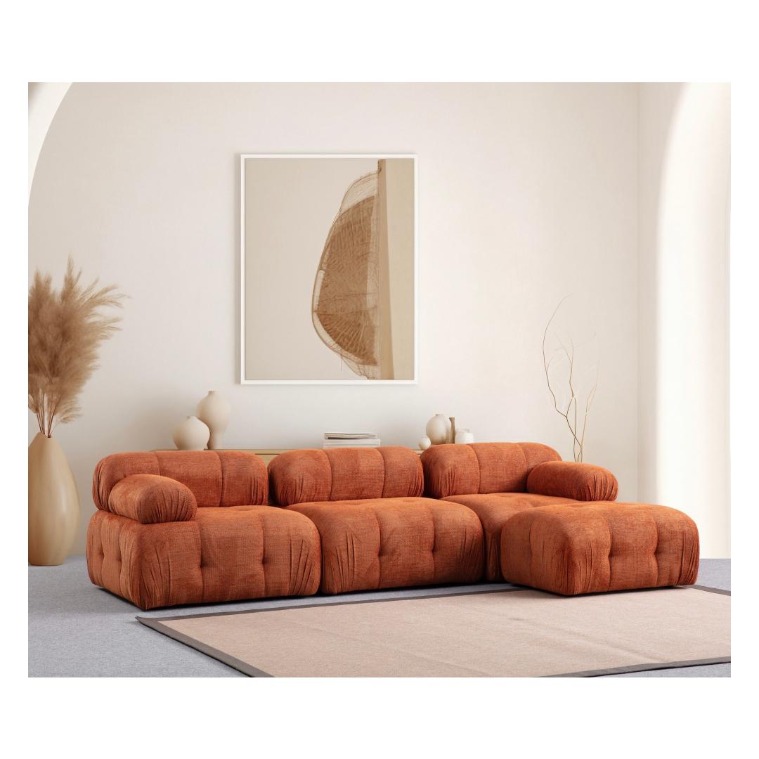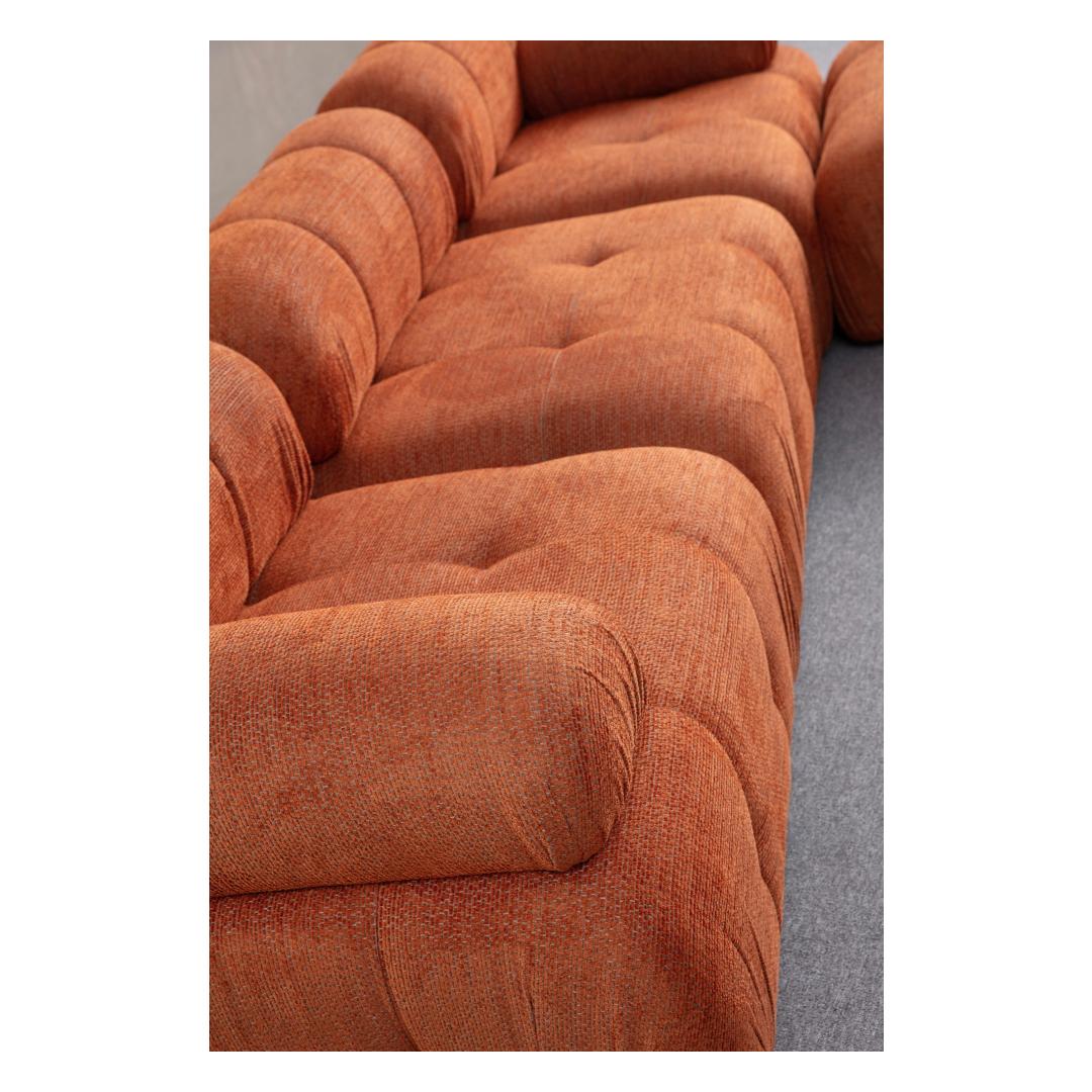 Transform your living space with our stunning Orange Corner Sofa. This piece is not just a piece of furniture, it's a statement of style and comfort. The vibrant orange color will add a pop of energy to any room, while the sleek design will elevate the overall look of your home.