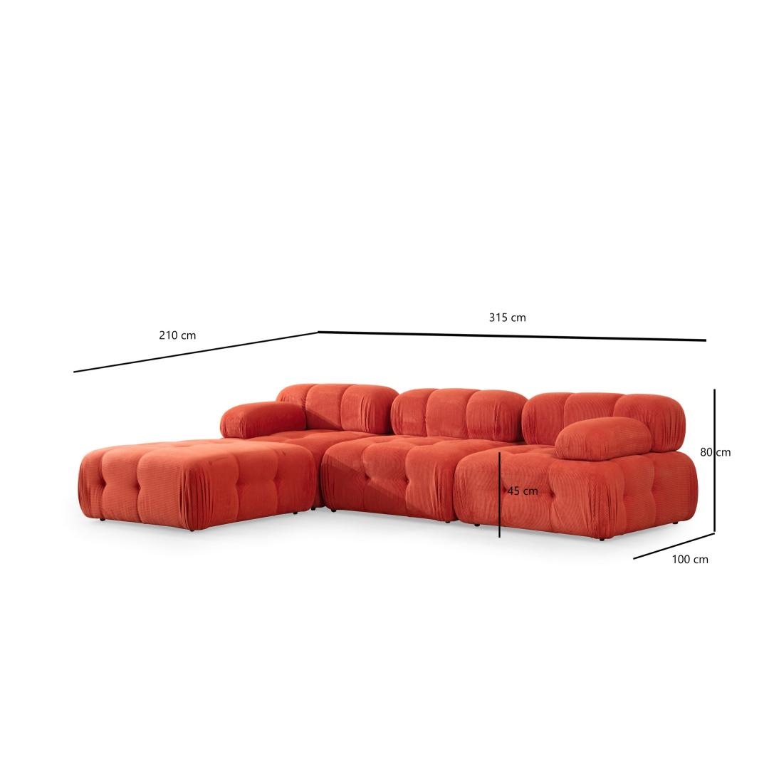 Diivan Doblo 3 Seater with Pouffe ( L1-O1-1R-Pouffe) - Red