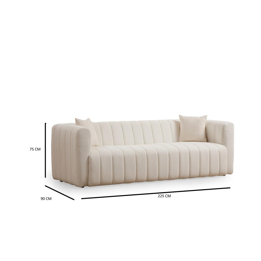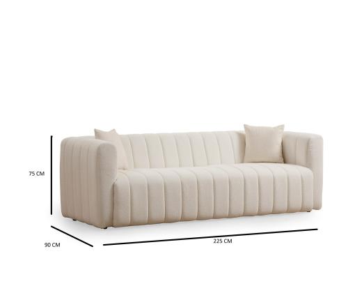 Tutvustame meie luksuslikku ja kütkestavat 3-kohalist diivanit, mis on loodud selleks, et muuta teie elutuba mugavuse ja stiili paradiisiks. Võrratu mugavus ja elegantsNautige meie 3-kohalise diivani pehmust, mis on hoolikalt valmistatud pöögipuu ja puitlaastplaadi raami kombinatsiooniga, mis tagab erakordse vastupidavuse ja stabiilsuse. Seljatoe 28 dns vahtpolster tagab optimaalse toe, mis võimaldab teil vajuda lõõgastumise maailma.Eriline kangas ja disain100% polüesterkangaga mähitud diivan õhkab elegantsust ja rafineeritust. Kreemjas värv lisab elegantsi igasse ruumi, sulandudes vaevata teie olemasoleva sisustusega. Fikseeritud istumis- ja seljapadi tagavad õmblusteta ja lihvitud välimuse, samas kui 2 kaasasolevat padja pakuvad lisamugavust ja võlu. Võrratu kvaliteet ja vastupidavusVõite olla kindel, et meie diivan on ehitatud nii, et see peab vastu aja katsumusele. Kuivpuhastatav kangas tagab lihtsa hoolduse ja kauakestva ilu, samas kui plastist ümmargused jalad tagavad stabiilsuse, ilma stiili osas järeleandmisi tegemata. Tehnilised üksikasjad:Raam: Pöögipuit ja puitlaastplaat, mis tagab erakordse vastupidavuseKangas: 100% polüester, mis tagab luksusliku tunde.Vaht: 8 cm 28 DNS hall vaht + 5 cm 24 DNS sulgi istumiseks, 24 DNS vaht + sulg seljatoele.Istme mõõtmed: Pikkus: 225 cm, laius: 90 cm, kõrgus: 75 cm, istme kõrgus: 42 cm.Kaasa arvatud 2 padja, mis on täidetud 60% vahtpolstriga ja 40% silikoonvahugaJalad: Plastist ümmargused jalad stabiilsuse ja stiili tagamiseksVärvus: kreemikas, lisab elegantsust igasse ruumiTõsta oma elamust meie 3-kohalise diivaniga, kus mugavus, stiil ja vastupidavus saavad kokku. Tellige kohe ja muutke oma kodu lõõgastumise ja ilu pühapaigaks. Värv: Cream