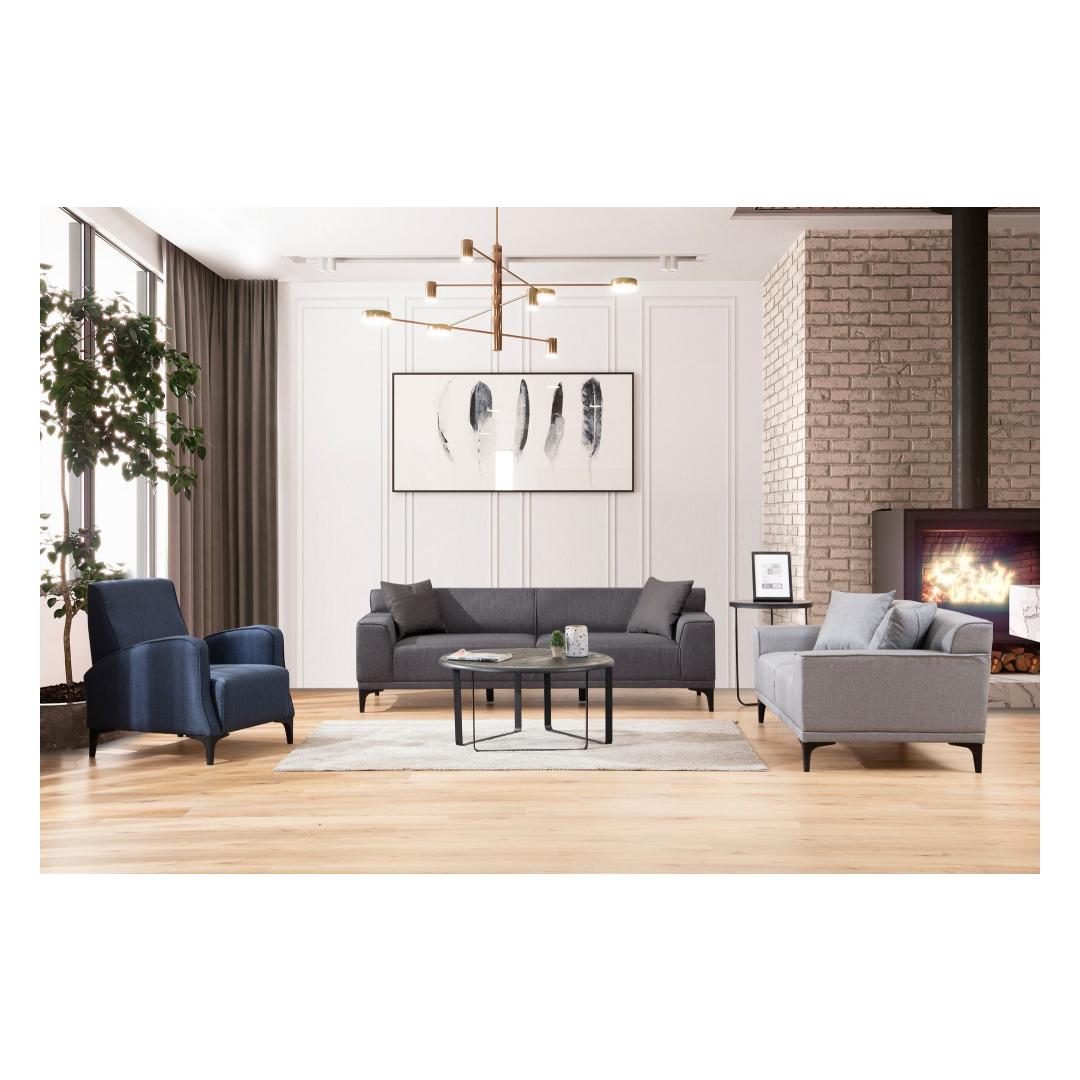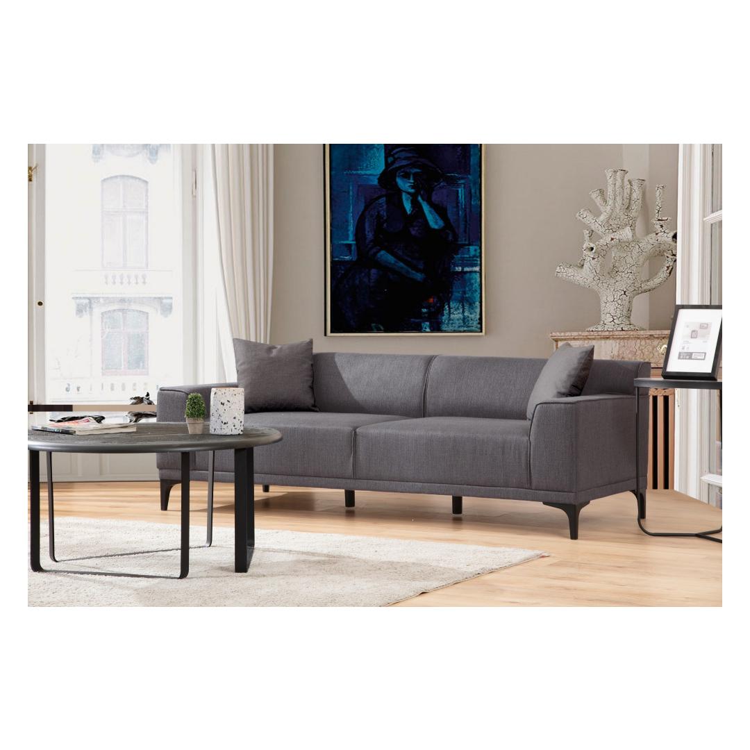 Kas olete valmis oma elutuba muutma hubaseks ja stiilseks pühamuks? Siis vaadake meie hämmastavat 3-kohalist diivanit antratsiidi värvuses. See suurepärane ese ei ole lihtsalt mööbel; see on elegantsi ja mugavuse väljendus, mis tõstab teie kodu atmosfääri.Ületamatu Mugavus ja KvaliteetLangetage end pehmesse 8 cm 28 DNS halli vahtu ja 5 cm 24 DNS sulepatjadele, mis pakuvad ideaalset tasakaalu toe ja pehmuse vahel. 24 DNS vaht ja sulepadjad seljatoe jaoks pakuvad tundide kaupa ületamatut mugavust. Diivani istme sügavus on 60 cm ja istme kõrgus 45 cm, mis on loodud maksimaalseks lõõgastumiseks.Šikk Disain ja VastupidavusValmistatud tugeva pöögipuidust ja puitlaastplaadist raamist, on see diivan loodud kestma. 100% polüestrist kangas on mitte ainult luksuslik puudutusele, vaid ka lihtne puhastada, tagades pikaajalise ilu. Sleek antratsiidi värv ja mustad kõvad plastjalad lisavad igasse ruumi elegantsi.Tehnilised Üksikasjad:Raam: Pöögipuu / PuitlaastplaatKangas: 100% PolüesterSuurus: Laius: 215 cm, Kõrgus: 87 cm, Sügavus: 86 cmKäe laius: 22 cmIstme sügavus: 60 cmIstme kõrgus: 45 cm8 cm 28 DNS hall vaht + 5 cm 24 DNS sulepatjad istumiseks24 DNS vaht + sulepatjad seljatoe jaoks2 patja kaasas60% lõigatud vaht / 40% silikoonvahtFikseeritud istme ja seljatoe padiKuivpuhastatav kangasJalad: Mustad kõvad plastjaladVärv: Antratsiit Värv: Anthracite