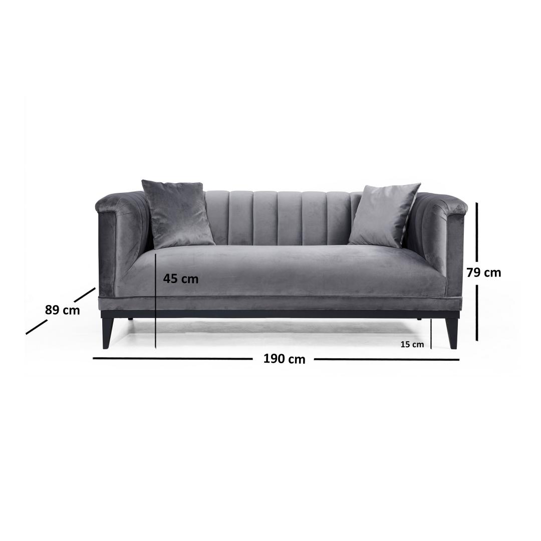 Tutvustame meie 2-kohalist diivanit: mugavuse ja stiili kehastus. Selle elegantse disaini ja luksusliku kangaga diivan muudab teie eluruumi lõõgastumise paradiisiks. Võrratu mugavus ja vastupidavusSee diivan on valmistatud tugevast pöögipuidust ja puitlaastplaadist raamiga, mis on loodud kestma. Kombinatsioon 3 cm 28 dns hallist vahtplastist, 10 cm taskuvedrust ja 3 cm 24 dns sulgedest tagab optimaalse istumismugavuse, samas kui 5 cm 28 dns pehme vahtplast tagab suurepärase toe teie seljale.Väga mitmekülgne ja praktilineMeie diivanil on ainulaadne voodisüsteem koos pööratava seljatoega mehhanismiga, mis võimaldab seda vajadusel hõlpsasti voodiks muuta. 175 cm laiune ja 93 cm sügavune voodi tagab teie külalistele mugava magamiskogemuse. Eraldage oma ruumiSelle diivani tumehall värvus ja moodne disain muudavad selle ideaalselt sobivaks igasse kaasaegse või tööstusliku teemaga interjööri. Mustad puidust jalad lisavad elegantsi, samas kui ühevärviline kontseptsioon lisab rafineeritust. Tehnilised üksikasjad:Raam: Puit: Pöögipuit / puitlaastplaatKangas: Materjal: 100% polüesterLaius: 190 cm, kõrgus: 79 cm, sügavus: 89 cm.Voodi suurus: Laius: 175 cm, sügavus: 93 cmVaht: 3 cm 28 DNS hall vaht + 10 cm tasku vedru + 3 cm 24 DNS sulgi (istumiseks), 5 cm 28 DNS pehme vaht (seljatoeks).2 padjat kaasas (suurus: 45 cm x 45 cm)%60 Snipe vaht / %40 Silikoon vaht / %40 Silikoon vahtKaasaskantav istumispadi, fikseeritud seljapadiKuivpuhastatav kangasJalad: mustad puidust jaladVärv: tumehallUuendage oma eluruumi meie 2-istmelise diivaniga ja kogege mugavuse ja stiili täiuslikku segu. Ärge jätke kasutamata seda võimalust, et muuta oma kodu lõõgastumise paradiisiks. Telli kohe! Värv: Dark Grey