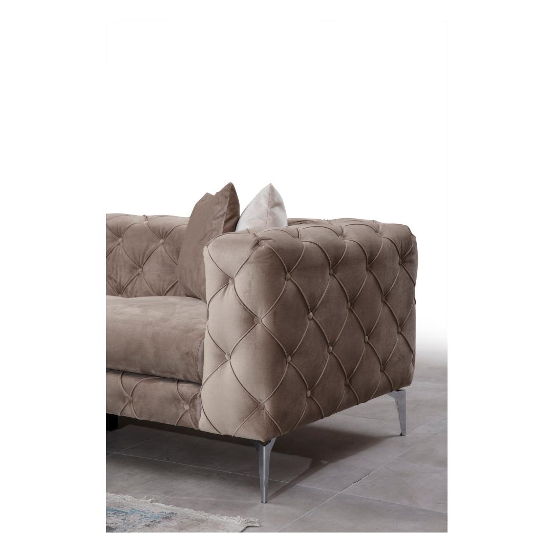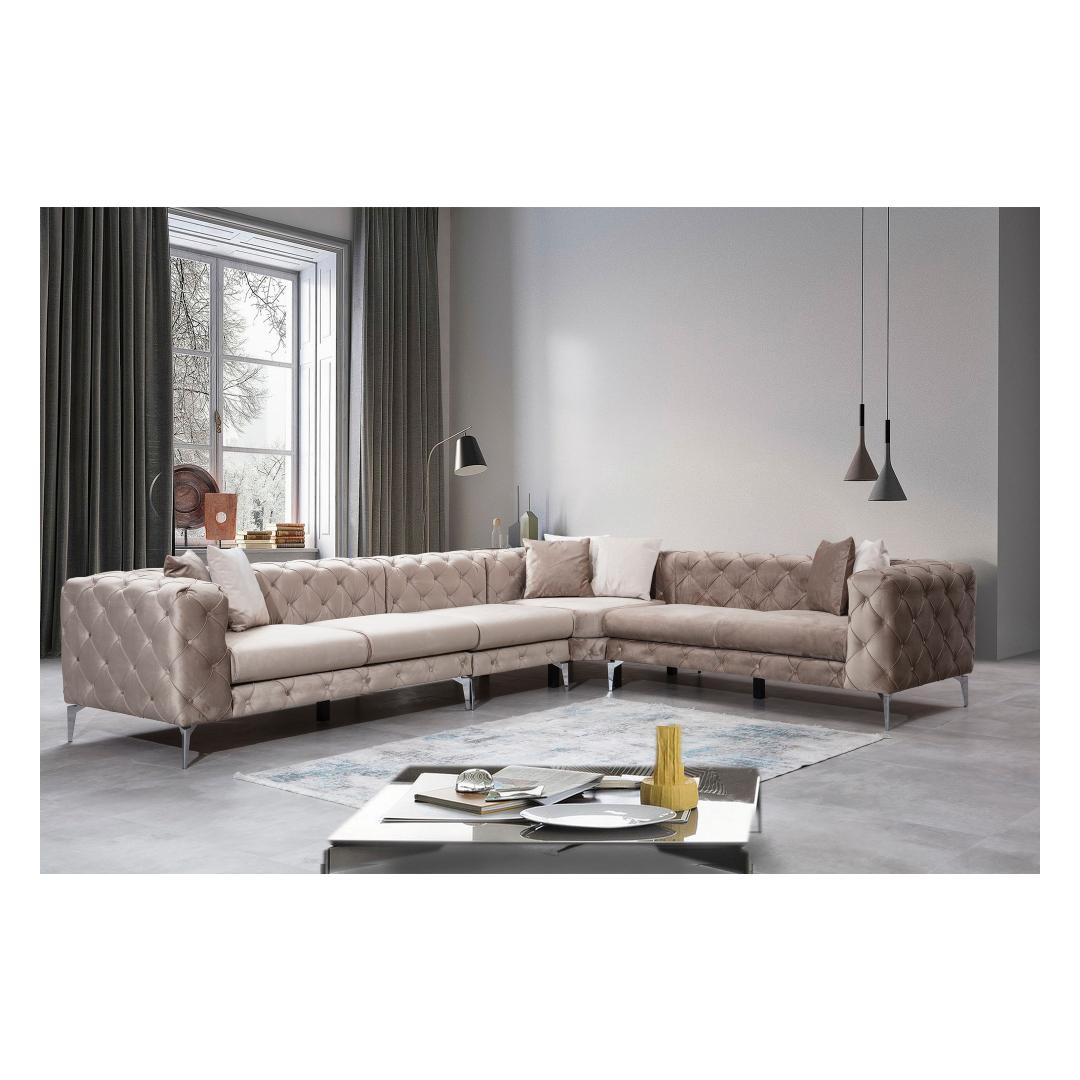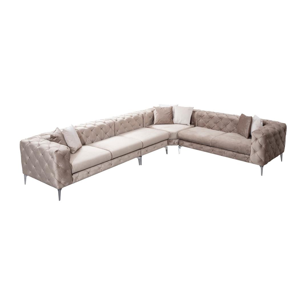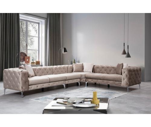 Tutvustame ülimat mugavust ja stiili meie nurgadiivaniga!Kogege võrratut mugavustVajutage meie nurgadiivani pehmedesse padjadesse ja tundke, kuidas stress ära sulab. 5 cm 28 dns hall vahtpolster ja 5 cm 24 dns sulged pakuvad täiuslikku tasakaalu toetuse ja pehmuse vahel, tagades tõeliselt luksusliku istumisvõimaluse. 24 dns sulgedega seljapadjad lisavad lisamugavust, muutes selle diivani ideaalseks kohaks, kus pärast pikka päeva lõõgastuda.Tõsta oma eluruumMeie nurgadiivan on oma elegantse ja moodsa disainiga tõeline väljapaistev ese. Massiivne beež värv lisab igasse ruumi elegantsust ja elegantsust, samal ajal kui mattmustad metalljalad annavad kaasaegse teravuse. Olenemata sellest, kas teil on traditsiooniline või modernne sisustus, see diivan sulandub sujuvalt, lisades teie eluruumi glamuuri. Monitoorne ja mugavKaasaskantavad istumis- ja seljapadjad võimaldavad diivanit hõlpsasti ümber paigutada vastavalt teie vajadustele. Ükskõik, kas soovite luua hubase nurga või avara istumisala, see diivan sobib igasse ruumi. Kuivpuhastatav kangas tagab lihtsa hoolduse, nii et saate hoida oma diivanit aastaid värskena ja puhtana. Tehnilised üksikasjad:Raam: Puit: Pöögipuit / puitlaastplaatKangas: Materjal: 100% polüesterLaius: 310 cm, kõrgus: 73 cm, sügavus: 270 cm.Vaht: 5 cm 28 DNS hall vaht + 5 cm 24 DNS sulega istumiseks, 24 DNS sulega seljatoele.5 padja on kaasas, suurus: 45 cm x 45 cm%60 Snipe vaht / %40 Silikoon vaht / %40 Silikoon vahtJalad: Matt mustad metalljaladVärv: beežKontseptsioon: Värviline - beež, moodne - uudne, Glam.Uuendage oma eluruumi meie nurgadiivaniga ja andke end hellitada mugavuse ja stiili täiuslikus segus. Tellige kohe ja muutke oma kodu lõõgastumise ja rafineerituse paradiisiks. Värv: Beige