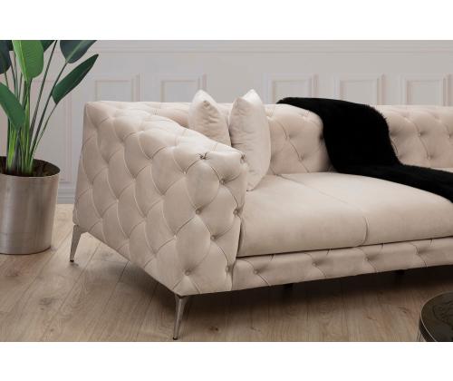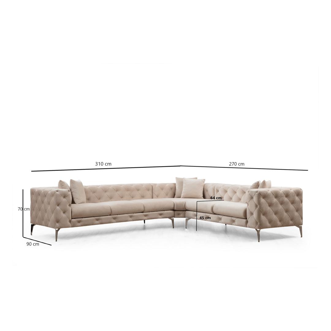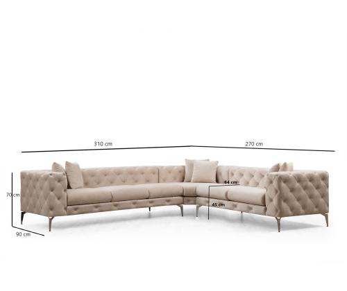 Tutvustame meie uimastavat nurgadiivanit, mis on mugavuse ja stiili meistriteos, mis muudab teie eluruumi lõõgastumise paradiisiks. Võrratu mugavus ja luksusVajutage meie nurgadiivani pehmete padjadesse ja kogege sellist mugavust, mida te pole kunagi varem kogenud. 5 cm 28 dns hall vahtpolster ja 5 cm 24 dns sulged istumiseks tagavad täiusliku tasakaalu toetuse ja pehmuse vahel, samas kui 24 dns sulgedega seljatugi tagab optimaalse lõõgastumise. Kuue kaasasoleva padja abil saate kohandada istumiskogemust vastavalt oma eelistustele.Kõrgepärane disain ja käsitööMeie nurgadiivan on valmistatud pöögipuu ja puitlaastplaadi kombinatsioonist, mis on loodud kestma. Tugev raam tagab vastupidavuse ja stabiilsuse, samal ajal kui metalljalad lisavad kaasaegset elegantsi. Ilusa ekru värvi 100% polüesterkangas õhkab rafineeritust ja on lihtsa hoolduse tagamiseks kuivpuhastatav. Muudatlik ja praktilineKaasaskantavad istumis- ja seljapadjad võimaldavad diivanit ümber paigutada vastavalt vajadusele, olenemata sellest, kas korraldate koosviibimist või lihtsalt lõõgastute üksinda. Eemaldatavad padjakatted muudavad puhastamise lihtsaks, tagades, et teie diivan näeb alati värske ja kutsuv välja. Tehnilised üksikasjad:Raam: Puit: Pöögipuit / puitlaastplaatKangas: Materjal: 100% polüesterLaius: 310 cm, kõrgus: 70 cm, sügavus: 270 cm.Vaht: 5 cm 28 DNS hall vaht + 5 cm 24 DNS Feather istumiseks, 24 DNS Feather seljatoele.6 padjat kaasas, suurus: 45 cm x 45 cm%60 Snipe vaht / %40 Silikoon vaht / %40 Silikoon vahtJalad: Metallist jalad, jala kõrgus: 17 cmEemaldatav padjakateVärv: EcruKontseptsioon: Kaasaegne - uudsus, Glam.Uuendage oma eluruumi meie nurgadiivaniga ja andke end ülimale mugavusele ja luksusele. Tellige kohe ja kogege oma kodus stiili ja funktsionaalsuse täiuslikku segu. Värv: Ecru