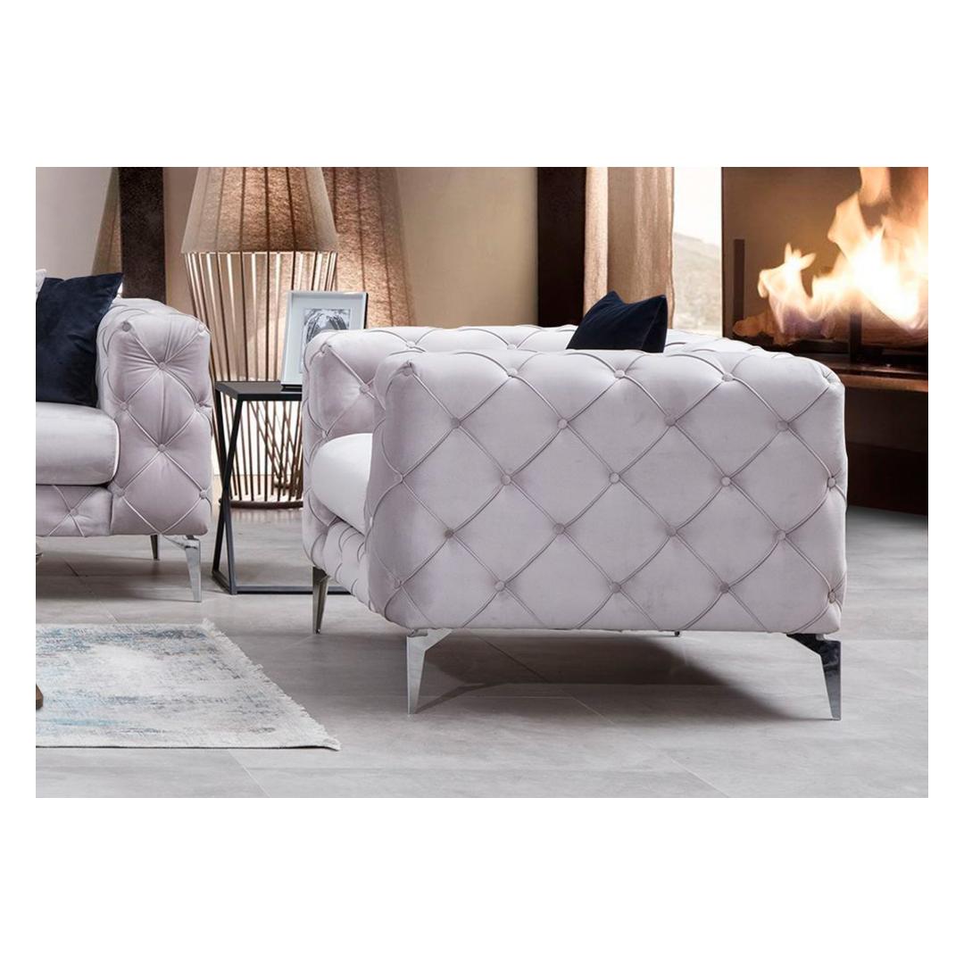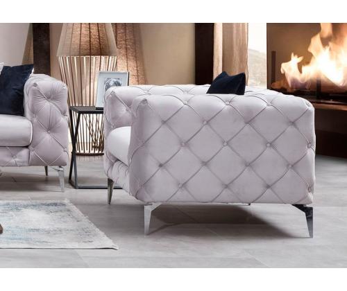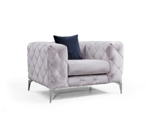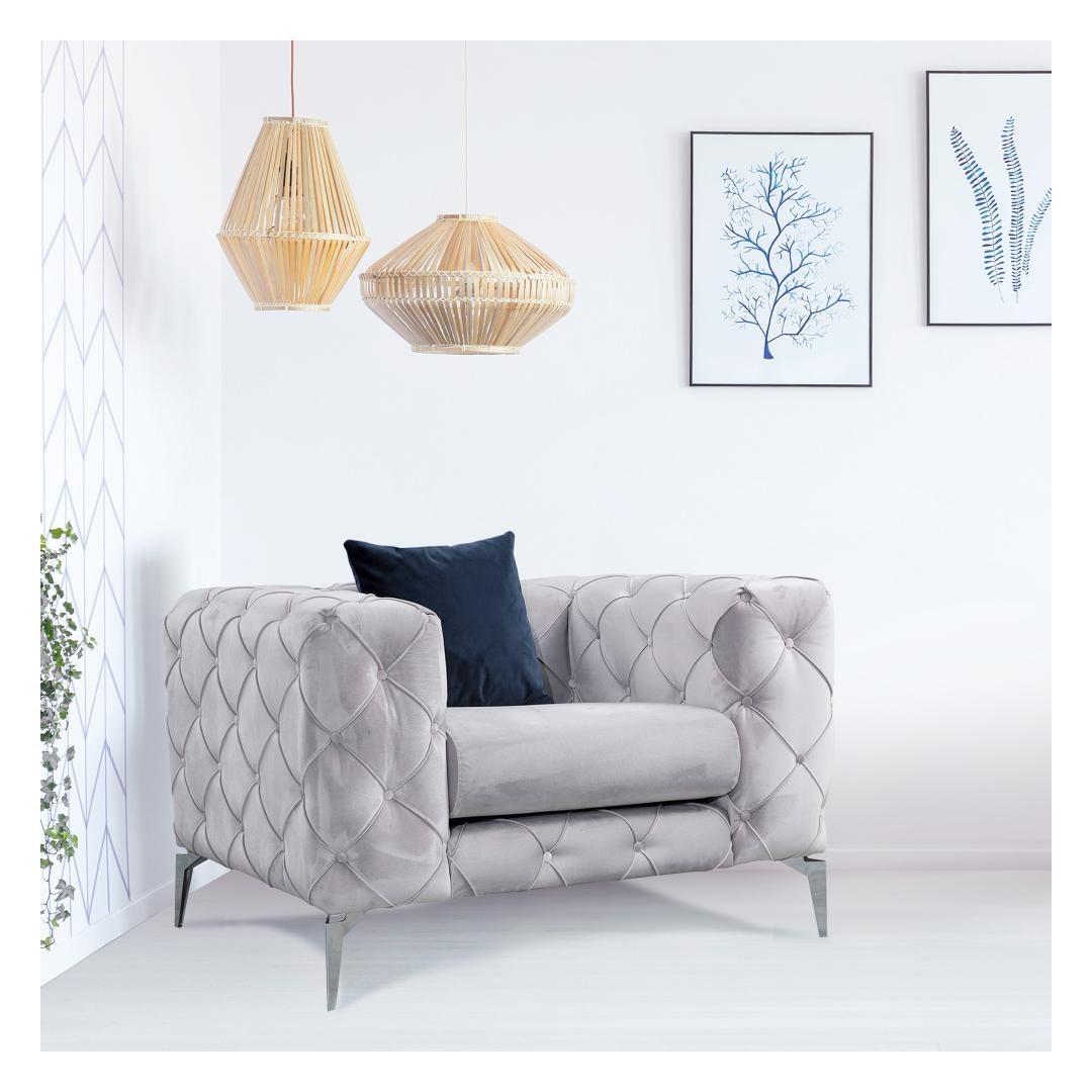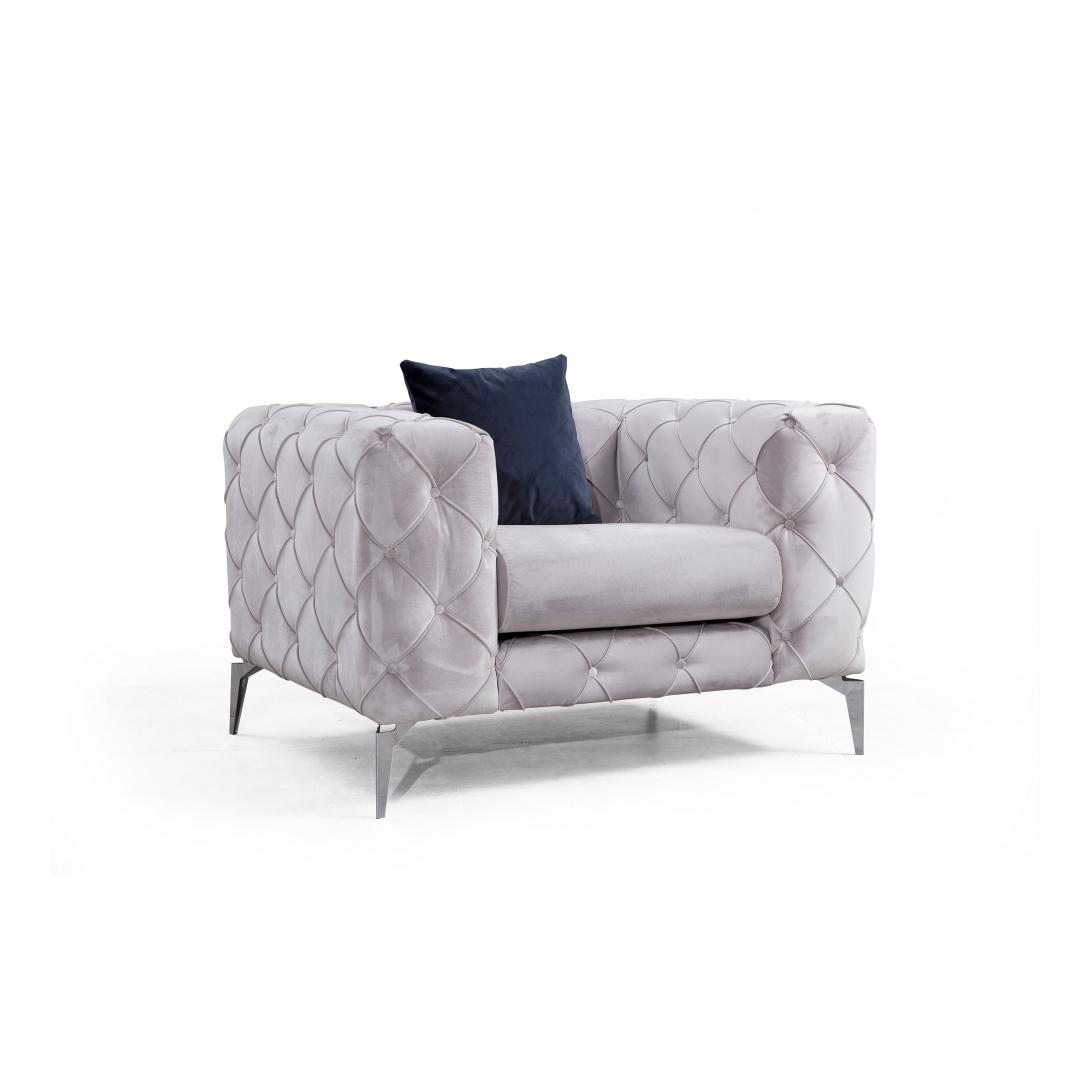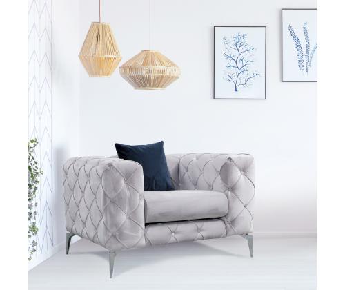 Naudi luksust ja mugavust meie kauni Wing Chair'iga, mis on ideaalne täiendus teie eluruumile. See kaasaegne ja glamuurne mööbliese tõstab iga toa stiili, pakkudes samal ajal hubast kohta lõõgastumiseks ja puhkamiseks. Sujuv disain ja kvaliteetsed materjalid teevad sellest toolist hädavajaliku valiku neile, kes hindavad nii stiili kui mugavust.Tõsta oma ruumiMuuda oma kodu meie Wing Chair'i elegantsi ja rafineeritusega. Šikk disain ja pehmed padjad loovad hubase oaasi, millest sa kunagi lahkuda ei soovi. Olgu see siis raamatu lugemine või külaliste meelelahutamine, see tool jätab kindlasti mulje.Luksuslik mugavusLangeta end 5 cm halli vaht- ja sulepadja pehmusesse, mis on loodud maksimaalse mugavuse ja toe tagamiseks. Kinnitatud seljatoepadi ja kaasaskantav istmepadja pakuvad ideaalset tasakaalu lõõgastumise ja stiili vahel. Kaasasolev padi lisab sellele juba kaunile tükile veelgi luksuslikuma puudutuse.Kaasaegne elegantsOma kroomitud metallist jalgade ja heleda halli kangaga kiirgab see Wing Chair modernsust ja rafineeritust. Sujuvad jooned ja kaasaegne disain teevad sellest silmapaistva mööblieseme igas toas. Tõsta oma ruumi selle stiilse ja mugava tooliga, mis on kõigi külaliste kadeduse objekt.Tehnilised andmed:Raam: Pöök / PuitlaastplaatKangas: 100% PolüesterLaius: 108 cm, Kõrgus: 70 cm, Sügavus: 90 cmIstm kõrgus: 45 cmVaht kõrgus: 16 cmVaht: 5 cm 28 DNS hall vaht + 5 cm 24 DNS sule istumiseks, 24 DNS sule seljatoeksDetail: 1 padi kaasas%60 Lõigatud vaht / %40 SilikoonvahtSuurus: 45 cm x 45 cmKuivpestav kangasJalad: Kroomitud metalljaladVärv: Hele hall Värv: Light Grey