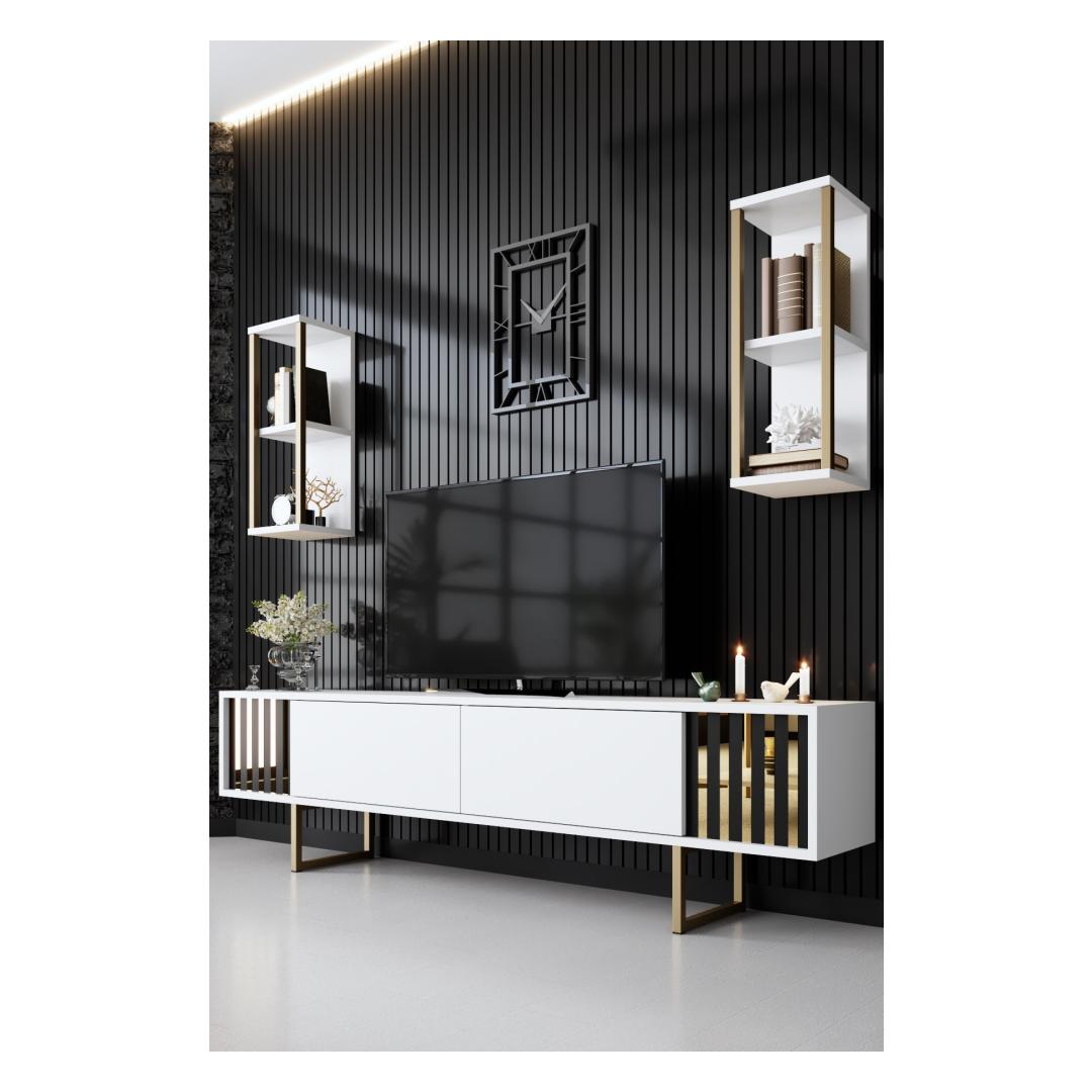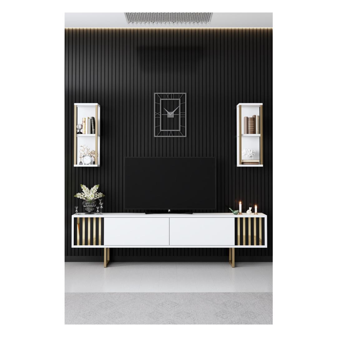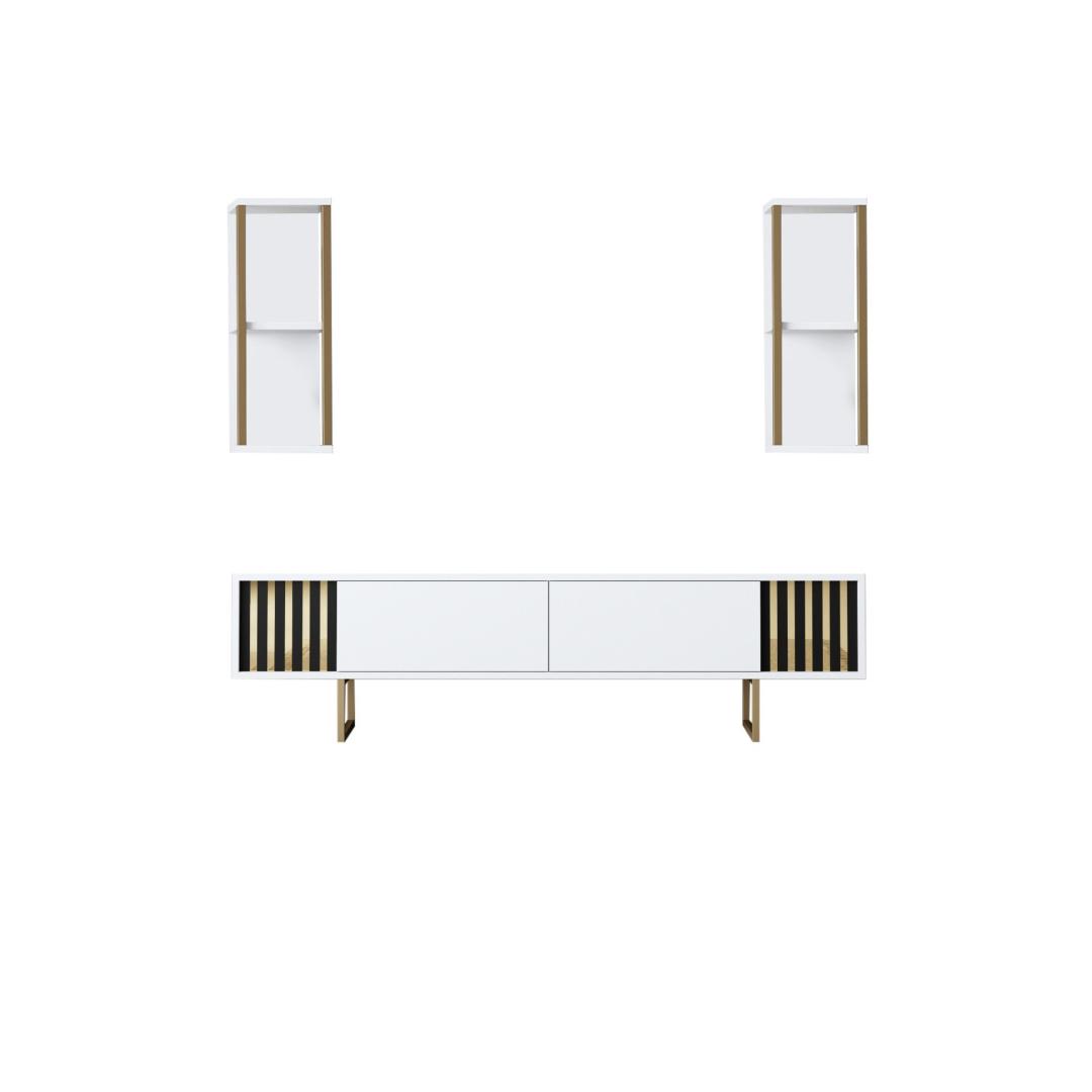 Muuda oma elutuba elegantseks ja stiilipäraseks meie suurepärase elutoa mööblikomplektiga. See komplekt on valmistatud ülima hoole ja tähelepanuga detailidele ning on mõeldud teie ruumi kaunistamiseks ja luksuse tunde tekitamiseks. Päratu iluValge ja kuldse värvi kombinatsioon loob uimastava visuaalse kontrasti, mis lummab silmi koheselt. Stiilne ja moodne disain lisab igasse ruumi elegantsust, muutes selle teie eluruumi täiuslikuks keskpunktiks.Võrratu vastupidavusSee 100% melamiiniga kaetud puitlaastplaadist valmistatud mööblikomplekt on ehitatud nii, et see peab vastu. 18 mm paksus tagab erakordse tugevuse ja stabiilsuse, samal ajal kui metalljalad pakuvad täiendavat tuge ja vastupidavust. Monitoorne ja funktsionaalneSee komplekt pakub teleripuldi, seinariiulite ja kohvilaudadega rohkelt hoiu- ja väljapanekuvõimalusi kõigile teie hädavajalikele asjadele. Suuremõõtmelise laiuse ja sügavusega teleripult mahutab suuri ekraane, samas kui seinariiulid pakuvad stiilset lahendust teie lemmikdekoratsioonide esitlemiseks. Kohvilaud sobib ideaalselt külaliste vastuvõtmiseks või hubase õhtu nautimiseks lähedastega. Tehnilised üksikasjad:Materjal: Materjal: Materjal: Materjal: Materjal: Materjal: Materjal: Materjal: materjal: 100% melamiiniga kaetud puitlaastplaatPaksus: 18 mmMetallist jalad lisavad stabiilsustJalgade kõrgus: 18 cmMõõtmed:Teleri statiiv: Laius: 180 cm, sügavus: 30 cm, kõrgus: 48 cm.Seina riiul: Laius: 22 cm, sügavus: 21 cm, kõrgus: 60 cm (2 tk)Kohvilaud: Laius: 80 cm, sügavus: 80 cm, kõrgus: 40 cmElustage oma elutuba meie elutoa mööblikomplektiga ja kogege täiuslikku segu stiilist, funktsionaalsusest ja vastupidavusest. Uuendage oma ruumi juba täna ja andke endale väärilist luksust. Värv: White Gold