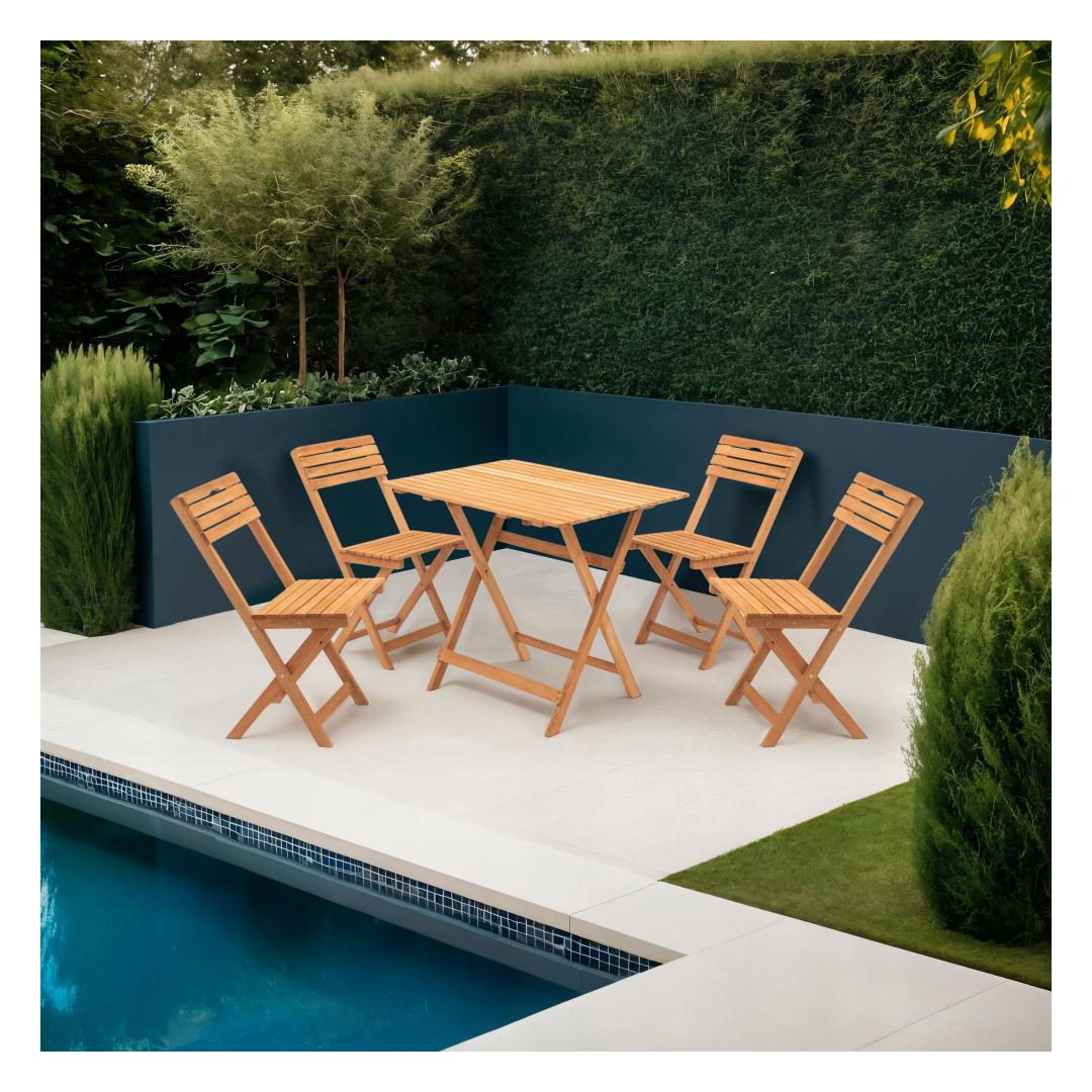 Loo oma tagahoovi rahulik oaas meie suurepärase aialaua ja toolide komplektiga!Muutke oma õueala rahulikuks ootelinnaks meie uimastava aialaua ja toolide komplektiga. See armastuse ja hoolega valmistatud 5-osaline komplekt on loodud selleks, et tuua teie aeda mugavust, stiili ja funktsionaalsust. Väljendage looduse iluMeie 100% pöögipuidust valmistatud laua ja toolide komplekt on tunnistus looduse ilust. Iga tükk on hoolikalt käsitsi valmistatud, et tuua esile puidu loomulikku tera ja tekstuuri, luues teie aias sooja ja kutsuva atmosfääri.Kogege võrratut mugavustNautige ülimat lõõgastust, kui vajute ergonoomilistesse toolidesse. Ideaalsete mõõtmete ja tugeva konstruktsiooniga toolid pakuvad erakordset mugavust ja tuge, võimaldades teil lõõgastuda ja nautida ümbritseva keskkonna rahulikkust. Säilitage ilu aastateksMeie aiakomplekt on töödeldud veepõhise puidukaitsevärviga, mis tagab selle pikaealisuse ja vastupidavuse ilmastikule. Lakkimata jätmine laseb puidu loomulikul ilul läbi paista, samas kui pruun värv lisab teie õuealale elegantsi. Tehnilised üksikasjad:Laua suurus: Laius: 80 cm, kõrgus: 72 cm, sügavus: 60 cm.Tooli suurus: Laius: 40 cm, kõrgus: 81 cm, sügavus: 30 cm (4 tk).Materjal: Materjal: Materjal: Materjal: Materjal: Materjal: Materjal: Materjal: materjal: 100% pöögipuitVärv: Vesipõhine puidukaitsevärvVärvus: pruunLooge koos sõprade ja perega unustamatuid mälestusi, kui kogunete selle suurepärase aiakomplekti ümber. Ärge jätke kasutamata võimalust suurendada oma õues elamise kogemust. Tellige kohe ja laske looduse ilu oma aeda omaks võtta! Värv: Brown
