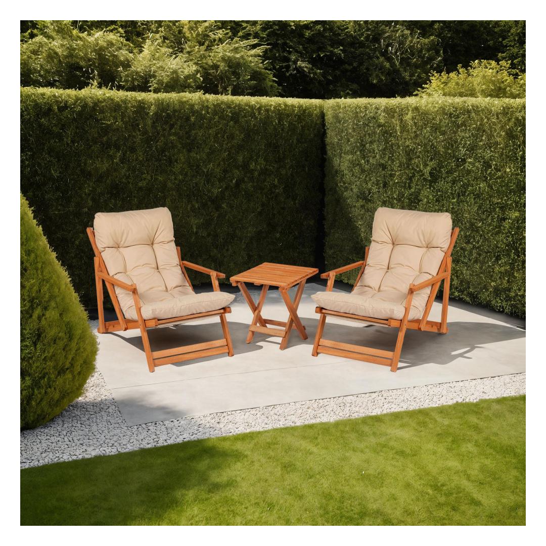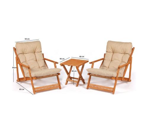 Muuda oma välistingimustes olev ruum hubaseks ja kutsuvaks oaasiks meie 3-osalise aiatabeli ja toolide komplektiga. 100% pöögipuust valmistatud see komplekt kiirgab soojust ja looduslikku ilu, olles ideaalne kohvi või eine nautimiseks värskes õhus.Loo Oma Isiklik Väljasoleku KohtKujutle end oma aias lõõgastumas, ümbritsetuna looduse ilust, koos meie võluva laua ja toolide komplektiga. Lihtne, kuid elegantne disain lisab igale välistingimustes olevale ruumile natuke rafineeritust, muutes selle ideaalseks kohaks lõõgastumiseks ja pärast pikka päeva välja puhkamiseks.Kvaliteetne Käsitöö, Kestv IluValmistatud kõrgekvaliteedilisest pöögipuust, on see komplekt loodud kestma aastaid. Veepõhine puidukaitse värv tagab, et komplekt on kaitstud ilmastikuolude eest, samas kui laki puudumine võimaldab puidu looduslikul ilul särada.Ideaalne Väikestele RuumiOma kompaktse suuruse tõttu on see 3-osaline komplekt ideaalne väikestele terrassidele, rõdudele või aedadele. Laua ja toolid saab kergesti kokku klappida ja hoiustada, kui neid ei kasutata, muutes selle mitmekülgseks ja praktiliseks lisandiks igasse välistingimustes olevale ruumile.Tehnilised Üksikasjad:Materjal: 100% pöögipuuIlma lakitaVeepõhine puidukaitse värvLaua suurus: Laius: 40 cm, Kõrgus: 40 cm, Sügavus: 40 cmTooli suurus: Laius: 50 cm, Kõrgus: 81 cm, Sügavus: 50 cmKokku pandud suurus: 150 cm (2 tükki)Värv: Pruun ja Kreem Värv: Brown Cream