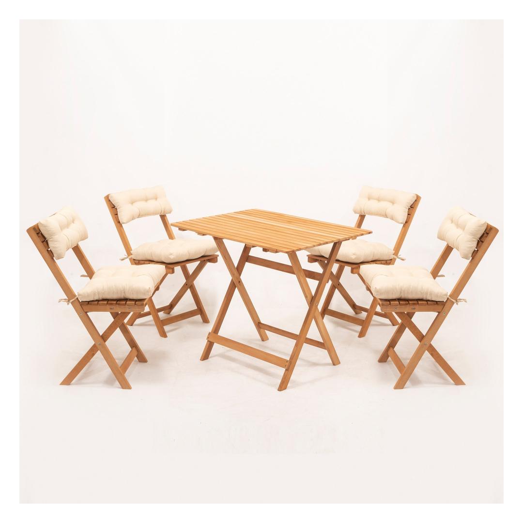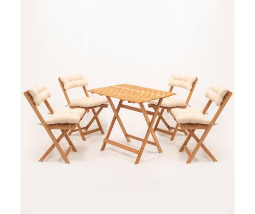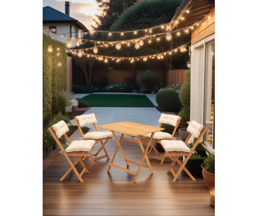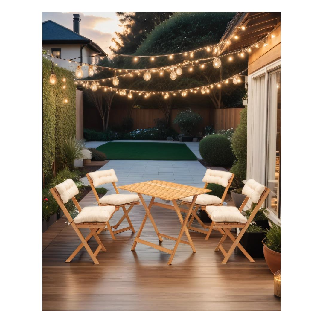 Loo rahulik oaas oma õueleMuutke oma õueala rahulikuks puhkekohaks meie suurepärase aialaua ja toolide komplektiga. See armastuse ja hoolega valmistatud 5-osaline komplekt on loodud selleks, et tuua teie terrassile või aeda ilu ja funktsionaalsust. Kogege pöögipuu loomulikku iluMeie 100% pöögipuidust valmistatud laua ja toolide komplektist õhkub elegantsust ja elegantsust. Puidu looduslik tera lisab maalähedast võlu, luues teie õueoasisse sooja ja kutsuva atmosfääri.Säästke keskkonda veepõhise värvigaMe usume säästlikku eluviisi, mistõttu on meie komplekt kaetud veepõhise puidukaitsevärviga. See keskkonnasõbralik valik ei kaitse puitu mitte ainult ilmastiku eest, vaid tagab ka teie pere ja keskkonna ohutuse. Täiuslikus suuruses teie mugavuse tagamiseksLaua laius on 80 cm, kõrgus 72 cm ja sügavus 60 cm, pakkudes piisavalt ruumi söögi, joogi või lihtsalt hea raamatu nautimiseks. Toolid, mille laius on 40 cm, kõrgus 81 cm ja sügavus 30 cm, pakuvad mugavat istumisvõimalust teile ja teie lähedastele. Harmooniline segu naturaalsetest ja kreemikatest värvidestLooduslike ja kreemjate värvide kombinatsioon meie komplektis lisab elegantsust ja elegantsust igale õuealale. Neutraalsed toonid sulanduvad vaevata mis tahes olemasoleva sisustusega, võimaldades teil luua ühtset ja stiilset välimust. Tehnilised üksikasjad:Materjal: materjal: 100% pöögipuitViimistlus: Lakk puudub, puidukaitsevärv vee baasil.Laua suurus: Laius: 80 cm, kõrgus: 72 cm, sügavus: 60 cm.Tooli suurus: Laius: 40 cm, kõrgus: 81 cm, sügavus: 30 cm (2 tk)Värv: naturaalne ja kreemjas Värv: Natural Cream