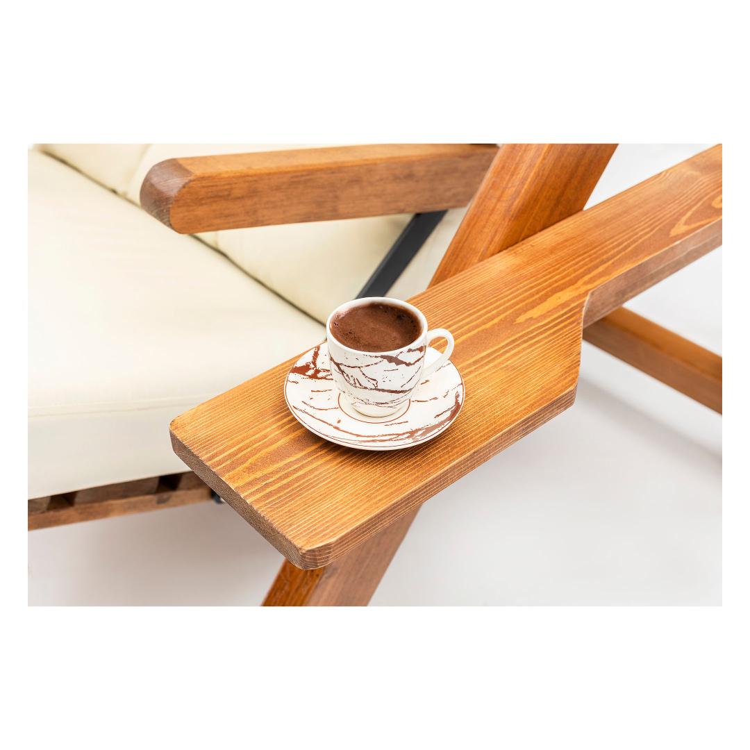 Koge oma aias ülimat lõõgastust meie aia ühe kiiktooligaMuuda oma aed rahulikuks oaasiks meie aia ühe kiiktooliga. See kaunilt disainitud kiiktool on ideaalne täiendus igale õuealale, pakkudes teile mugavat ja stiilset kohta lõõgastumiseks ja looduse ilu nautimiseks. Lõdvestuge mugavuses ja stiilisMeie kiiktool on valmistatud 100% männipuidust raami ja 100% polüesterkangast ning pakub nii vastupidavust kui ka mugavust. Kergesti puhastatav kangas tagab, et hooldamine on imelihtne, samas kui veekindel ja UV-valgustuskindel omadused tagavad, et teie kiiktool peab vastu ilmastikule ja säilitab oma erksad värvid. Päästke igapäevasest stressistSuuremõõtmelise padjasuuruse ja ergonoomilise disainiga pakub meie kiiktool ülimat lõõgastumise kogemust. Lai istme ja selja kõrgus tagavad optimaalse toe, samas kui eemaldatav padjakate võimaldab lihtsat puhastamist ja kohandamist. Välistage oma õuealaOlenemata sellest, kas teil on moodne, uudne, hotell, rustikaalne või aiateemaline õueala, sobib meie kiiktool sujuvalt igasse kontseptsiooni. Selle kreemikas värv lisab elegantsust ja rafineeritust, muutes selle teie aias silmapaistvaks esemeks. Tehnilised üksikasjad:Raam: 100% männipuitKangas: Materjal: 100% polüesterLihtne puhastada kangastVeekindelUV valguskindelPadja suurus: Laius: 75 cm, sügavus: 58 cm.Tooli suurus: Laius: 113 cm, kõrgus: 195 cm, sügavus: 120 cm.Istme suurus: Laius: 65 cm, kõrgus: 45 cm, sügavus: 50 cm.Istme (selja) kõrgus: 55 cmJalgade kõrgus: 163 cmEemaldatav padjakateVajalik kokkupanekVärv: kreemikas Värv: Cream