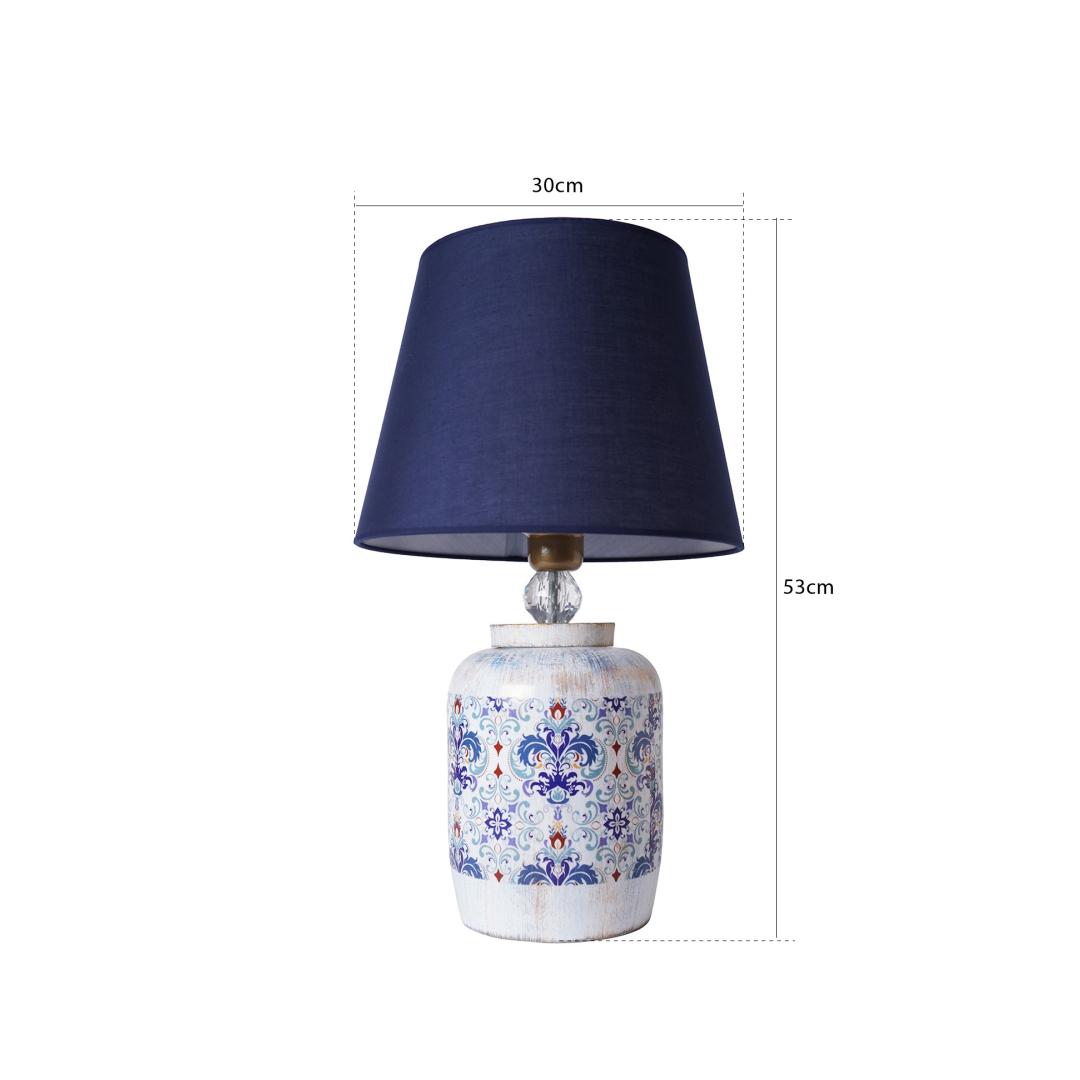 Illuminate your space with the elegant and charming Ceramic Table Lamp. This stunning piece features a beautifully crafted ceramic body in a soothing blue color that will add a touch of sophistication to any room. The fabric cap adds a soft and inviting glow, creating a warm and welcoming atmosphere.