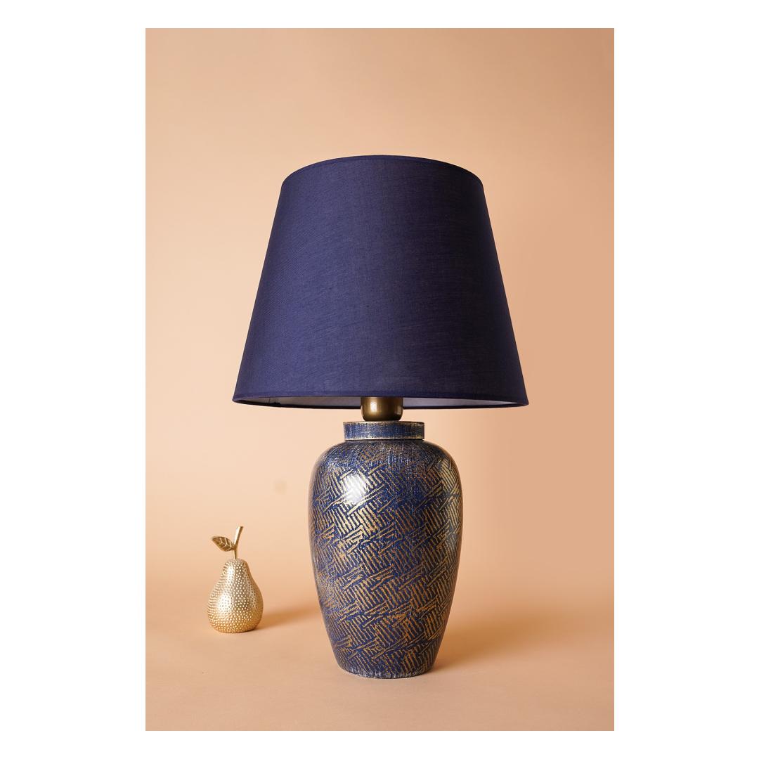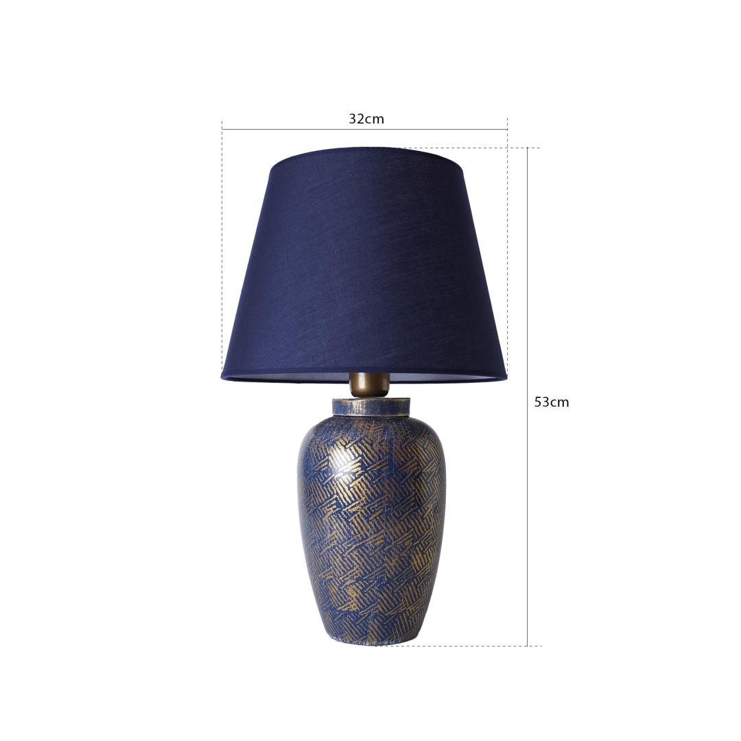 Illuminate your space with elegance and style with our stunning Ceramic Table Lamp. This exquisite lamp features a beautifully crafted ceramic body in a captivating blue and gold color combination, adding a touch of sophistication to any room. The fabric cap adds a soft and inviting glow, creating a warm and inviting atmosphere in your home.