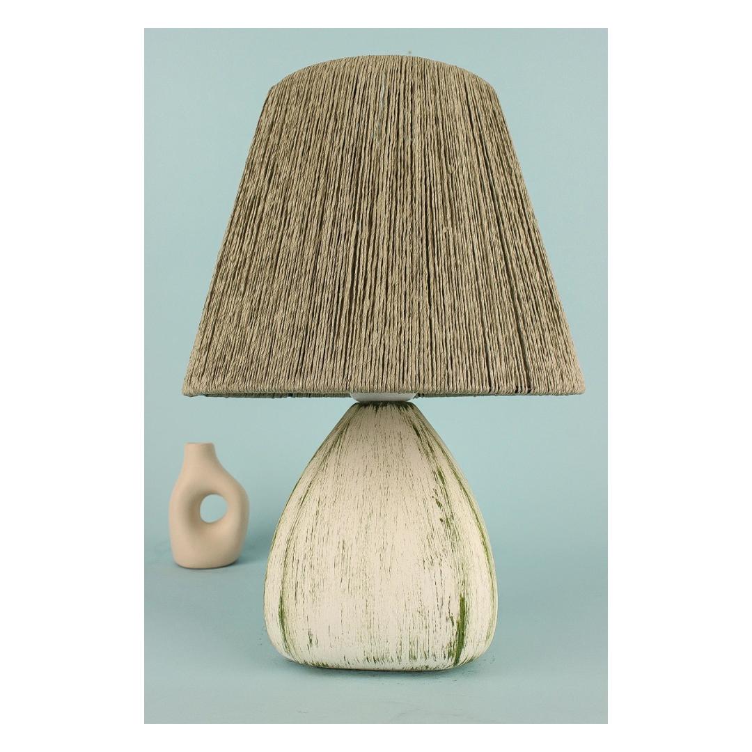 Illuminate your space with the enchanting glow of our Ceramic Table Lamp. This stunning piece features a beautifully crafted ceramic body in a soothing green hue, adding a touch of elegance to any room. The jute cap adds a natural and rustic element, creating a perfect balance of modern and organic design.