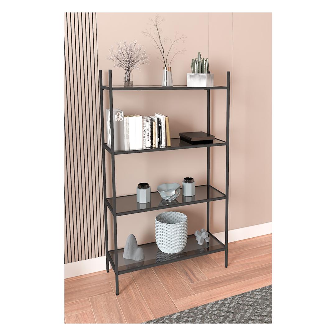 Bookshelf Marta - Black, Smoked Glass