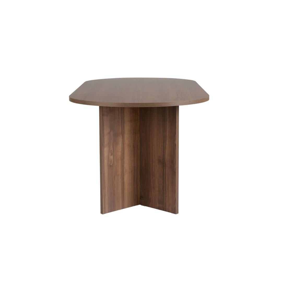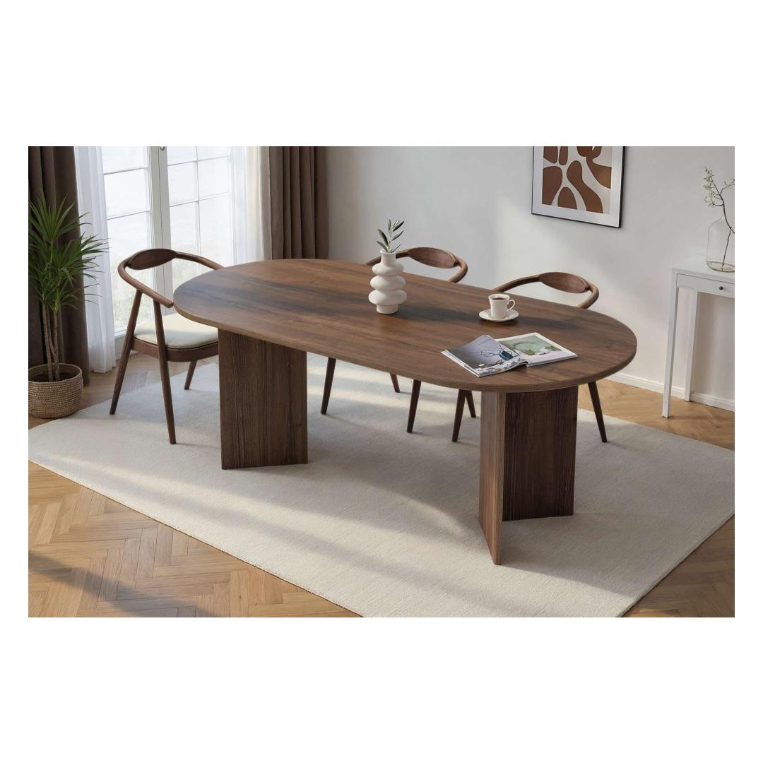Tõsta oma söögikogemust meie kauni pähklipuust söögilauaga. Valmistatud 100% melamiinkattega puitlaastplaadist, kiirgab see laud elegantsi ja rafineeritust. Selle voolujooneline disain ja rikkalik pähklipuu värv tõstavad koheselt sinu söögitoa ilmet, muutes iga eine eriliseks sündmuseks.Muuda oma söögitubaÜtle hüvasti igavatele einetele tuhmil laual. Meie pähklipuust söögilaud muudab sinu söögitoa stiilseks ja kutsuvaks ruumiks, kus saad koos pere ja sõpradega luua kestvaid mälestusi.Kvaliteetne käsitöö25 mm paksusega, ei ole see söögilaud mitte ainult ilus, vaid ka vastupidav ja tugev. Sa saad usaldada, et see peab vastu ajale, pakkudes sulle usaldusväärset ja stiilset söögilahendust aastateks.Lihtne kokku pannaLihtsa kokkupanemise protsessiga saad oma uue söögilauda kiiresti üles seada ja kasutamiseks valmis. Ütle hüvasti keeruliste juhiste ja pettumust valmistava kokkupanemisega - meie pähklipuust söögilaud on loodud sinu mugavuse jaoks.Tehnilised andmed:Materjal: 100% melamiinkattega puitlaastplaatPaksus: 25 mmLaius: 200 cmKõrgus: 75 cmSügavus: 90 cmVärv: Pähkel Värv: Walnut
