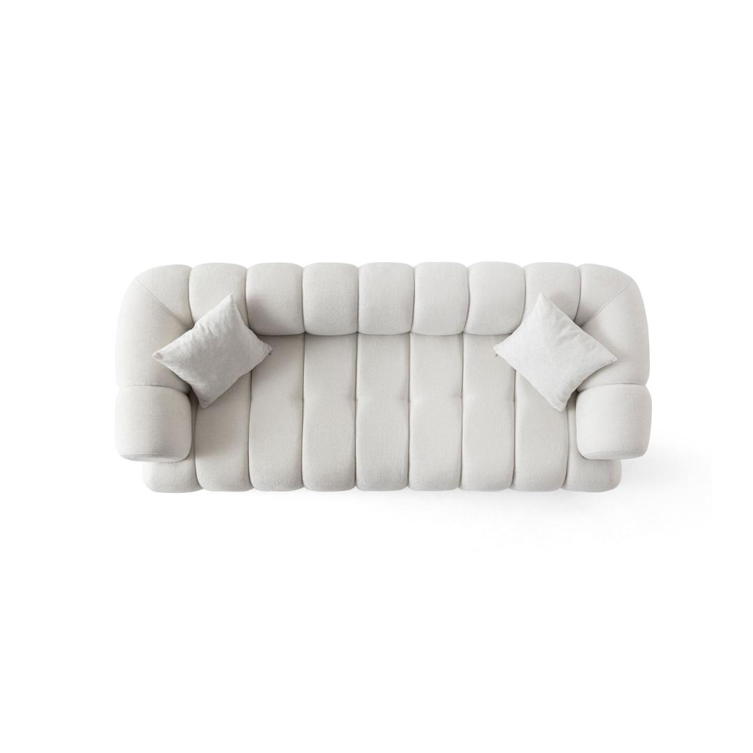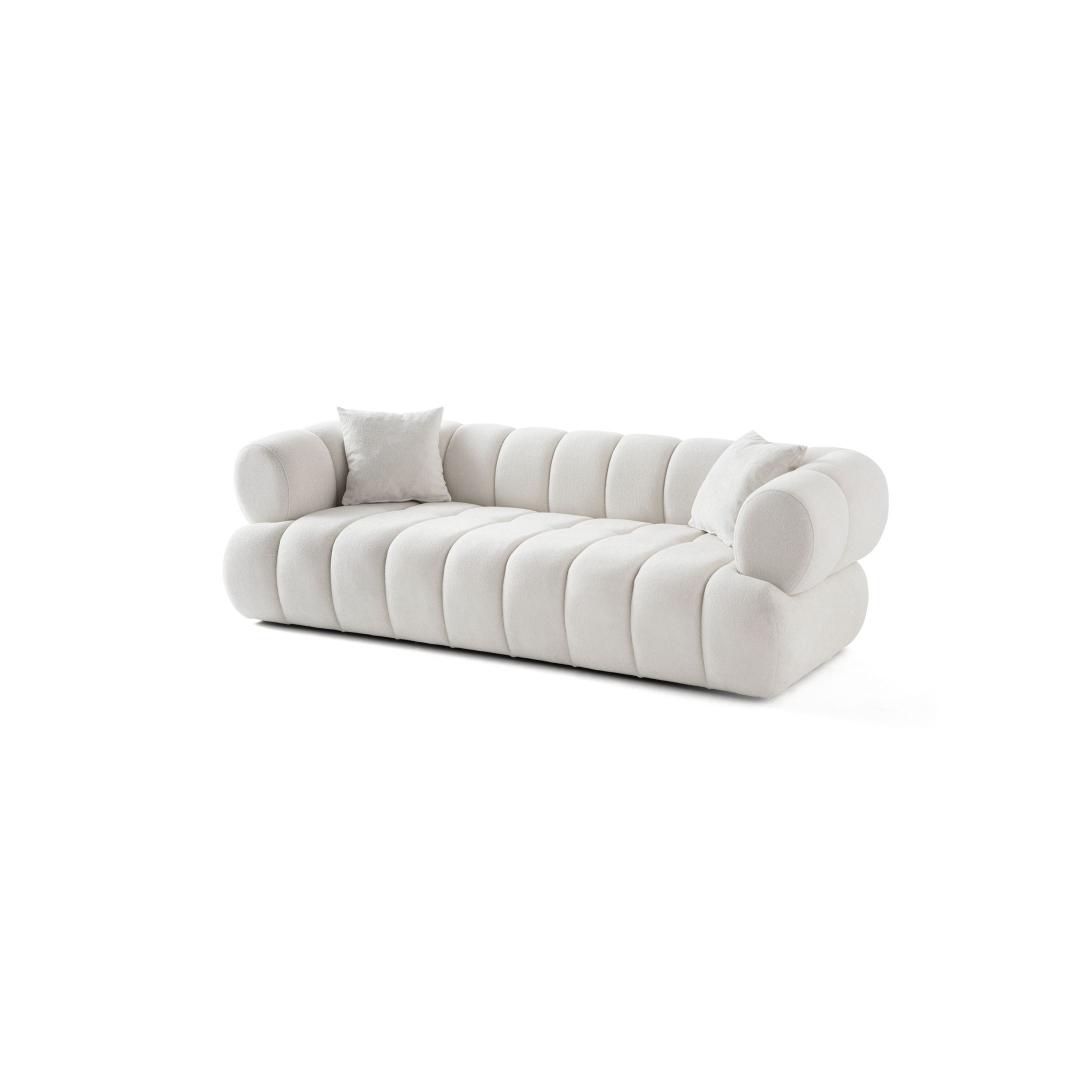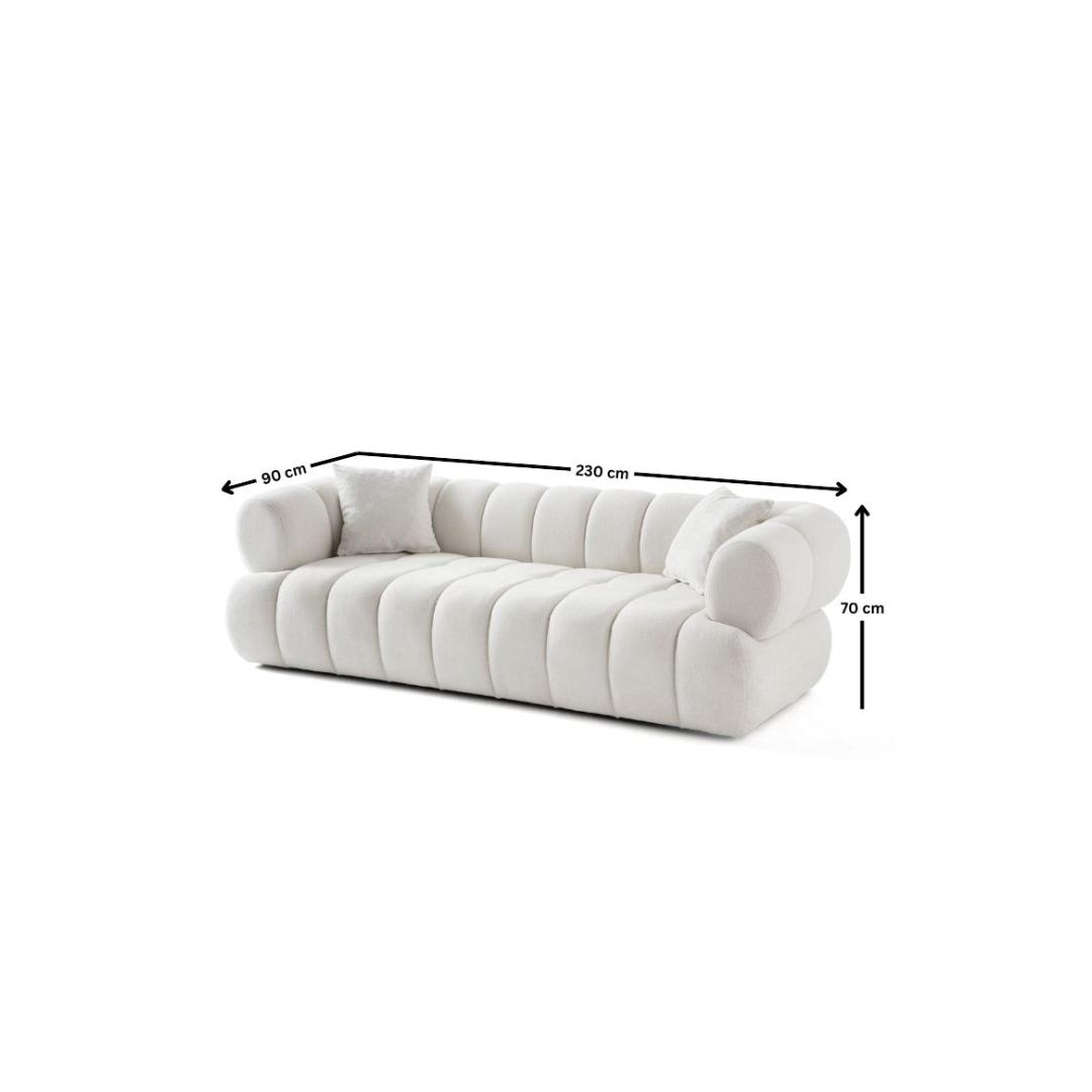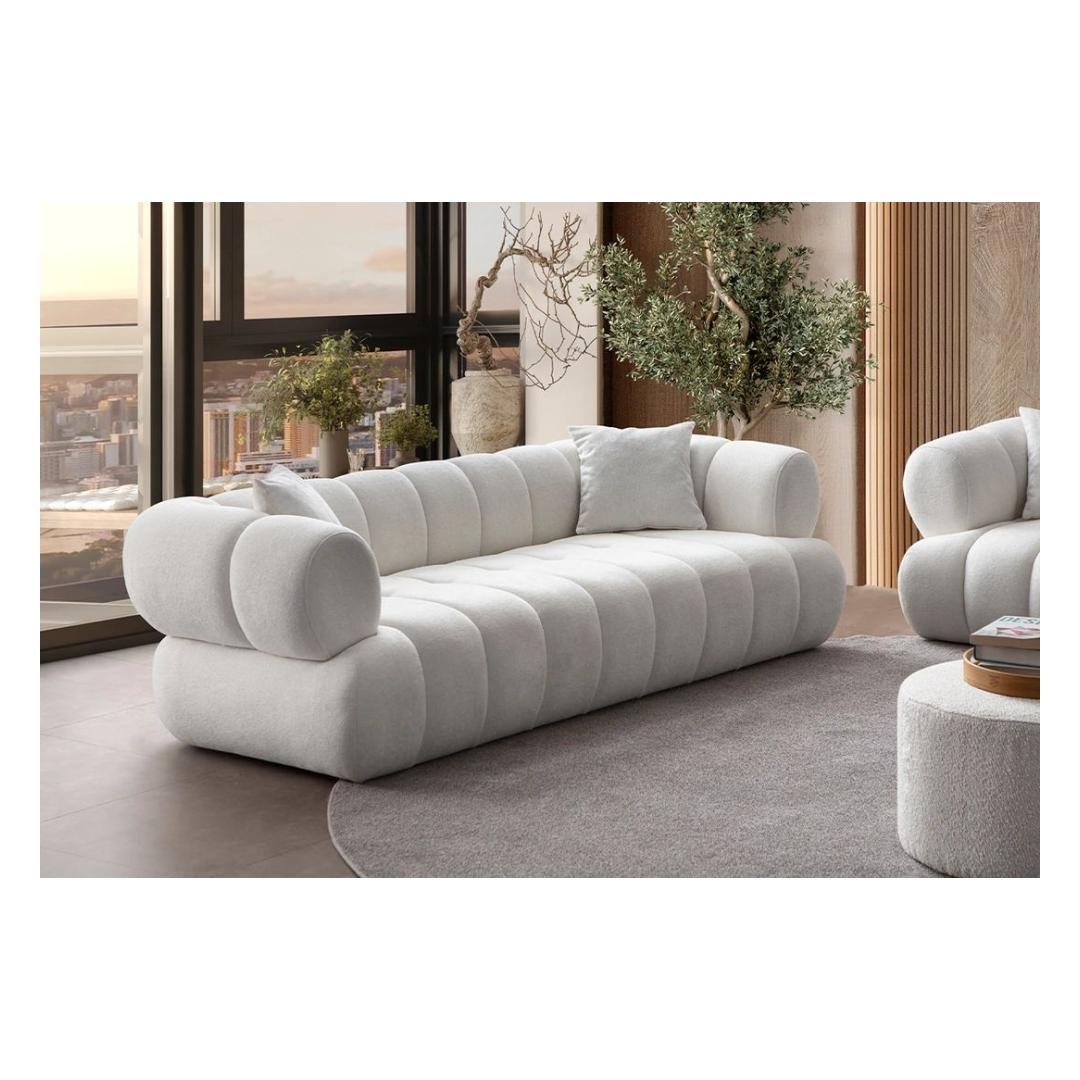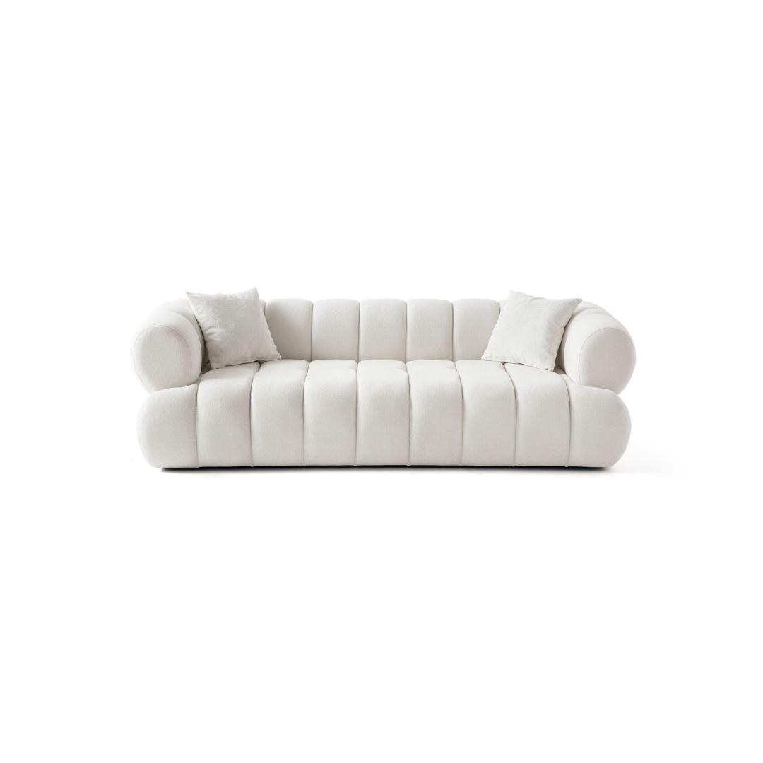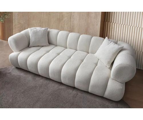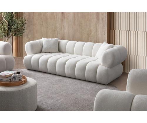 Muuda oma eluruum luksusliku 3-kohalise diivani abil, mis on loodud tooma mugavust ja stiili sinu koju. Selle diivani sujuv ja modernne disain tõstab iga ruumi, luues hubase ja kutsuva atmosfääri, kus sina ja sinu lähedased saavad lõõgastuda ja puhata.Ükski mugavus ja kvaliteet ei ole võrreldavadValmistatud vastupidavast raamistikust, mis koosneb 70% sarapuu ja 30% melamiinkattega puitlaastplaadist, on see diivan loodud kestma aastaid. 100% polüestrist kangas, millel on boucle tekstuur, lisab elegantsi, pakkudes samal ajal pehmet ja mugavat istumiskogemust. 32 DNS vahtmaterjal tagab maksimaalse mugavuse ja toe, muutes selle ideaalseks kohaks lõõgastumiseks pärast pikka päeva.Kergesti hooldatav ja stiilneSelle diivani lihtne puhastamine muudab selle praktiliseks valikuks kiire elustiiliga peredele, võimaldades hoida seda värskena ja uue näoga minimaalse vaevaga. Kaasaskantav seljatoe padja lisamine toob mitmekesisust ja mugavust, võimaldades sul kohandada oma istumiskogemust vastavalt vajadustele. Kaasasolevad padjad pakuvad lisamugavust ja stiili, muutes selle diivani hädavajalikuks lisandiks sinu koju.Tehnilised andmed:Raam: 70% SARAPUU / 30% MELAMIINKATTED PUITLAASTPLAATKangas: 100% POLÜESTER (Boucle tekstuur)PlastjaladKergesti puhastatavKaasaskantav seljatoe padi32 DNS vahtmaterjalVahtmaterjali kõrgus: 20 cmKahe padja komplekt on kaasasLaius: 230 cm Kõrgus: 70 cm Sügavus: 70 cmKäetoe kõrgus: 70 cmJala kõrgus: 1,5 cmKandevõime: 240 kgVärv: Valge Värv: White