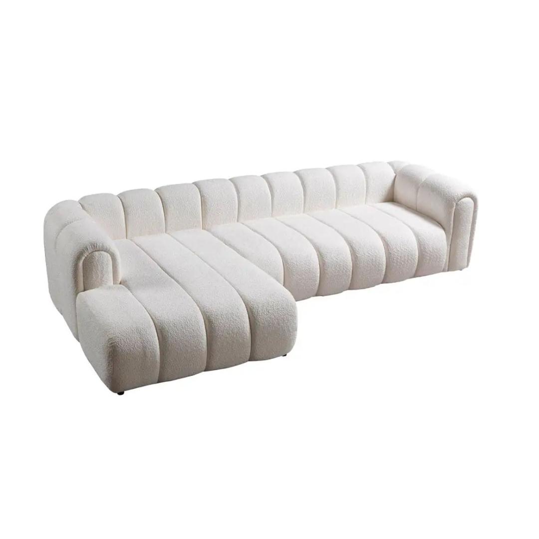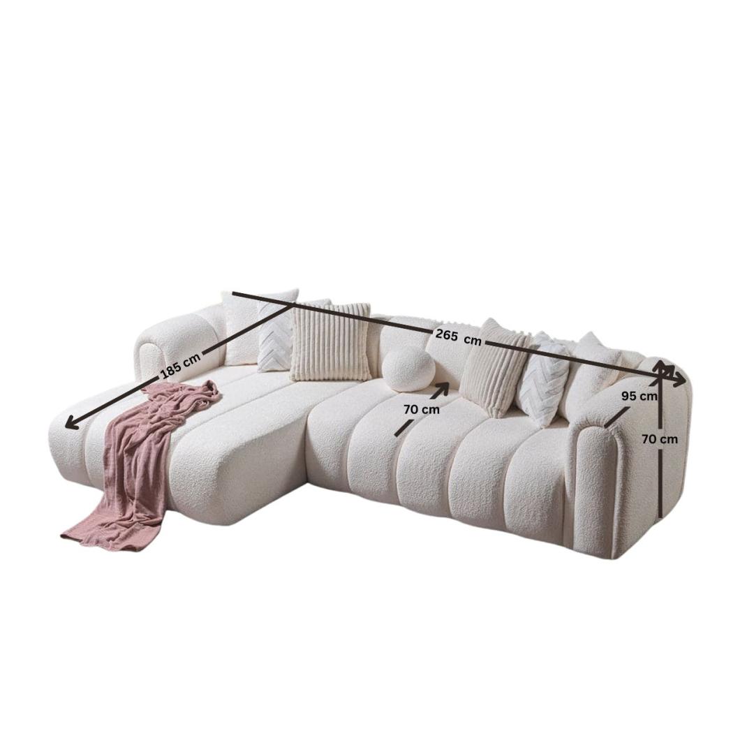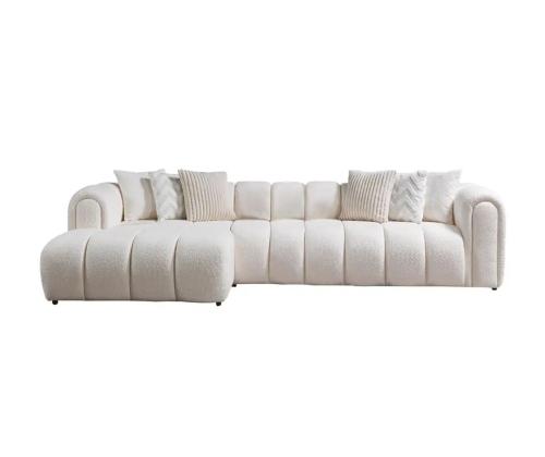 Muuda oma eluruum meie kauni nurgadiivaniga, mis on loodud tooma sinu koju nii stiili kui mugavust. Vastupidav raam, mis koosneb 70% sarapuu ja 30% melamiinkattega puitlaastplaadist, tagab, et see diivan kestab aastaid. Kangas on 100% polüester luksusliku boucle tekstuuriga, lisades igasse ruumi elegantsi.Mugavus ja stiil koos30 DNS vaht ja kaasaskantav seljatoe padja pakuvad ideaalset tasakaalu toe ja mugavuse vahel, muutes selle diivani ideaalseks lõõgastumiseks või külaliste vastuvõtmiseks. Seitsme kaasasoleva padja lisamine toob juurde mugavuse ja stiili, luues sinu elutoas sooja ja kutsuva atmosfääri.Kergesti hooldatav ja liigutatavPlastjalad muudavad diivani alt puhastamise lihtsaks, samas kui kerge disain võimaldab seda vaevata ümber paigutada, kui soovid. Diivani valge värv lisab igasse sisustusse modernset puudutust, luues ereda ja kutsuva ruumi lõõgastumiseks.Tehnilised andmed:Raam: 70% sarapuu / 30% melamiinkattega puitlaastplaatKangas: 100% polüester (boucle tekstuur)PlastjaladKergesti puhastatav disainKaasaskantav seljatoe padi30 DNS vaht, kõrgus 20 cmMõõtmed: 265 x 185 x 70 cm (laius x sügavus x kõrgus)Käetoe kõrgus: 70 cmJala kõrgus: 1,5 cmKandekapasiteet: 240 kgVärv: Valge Värv: White