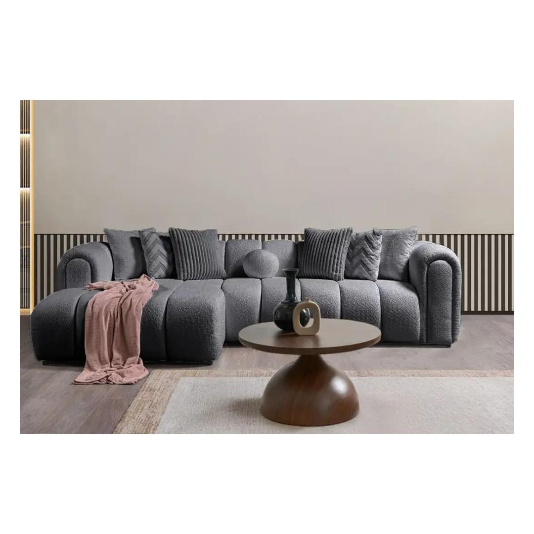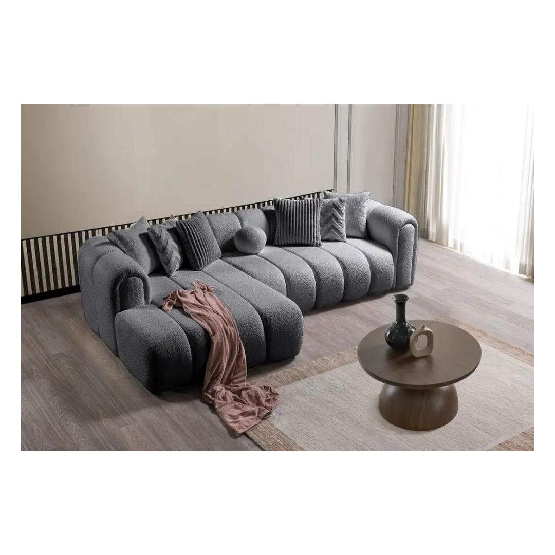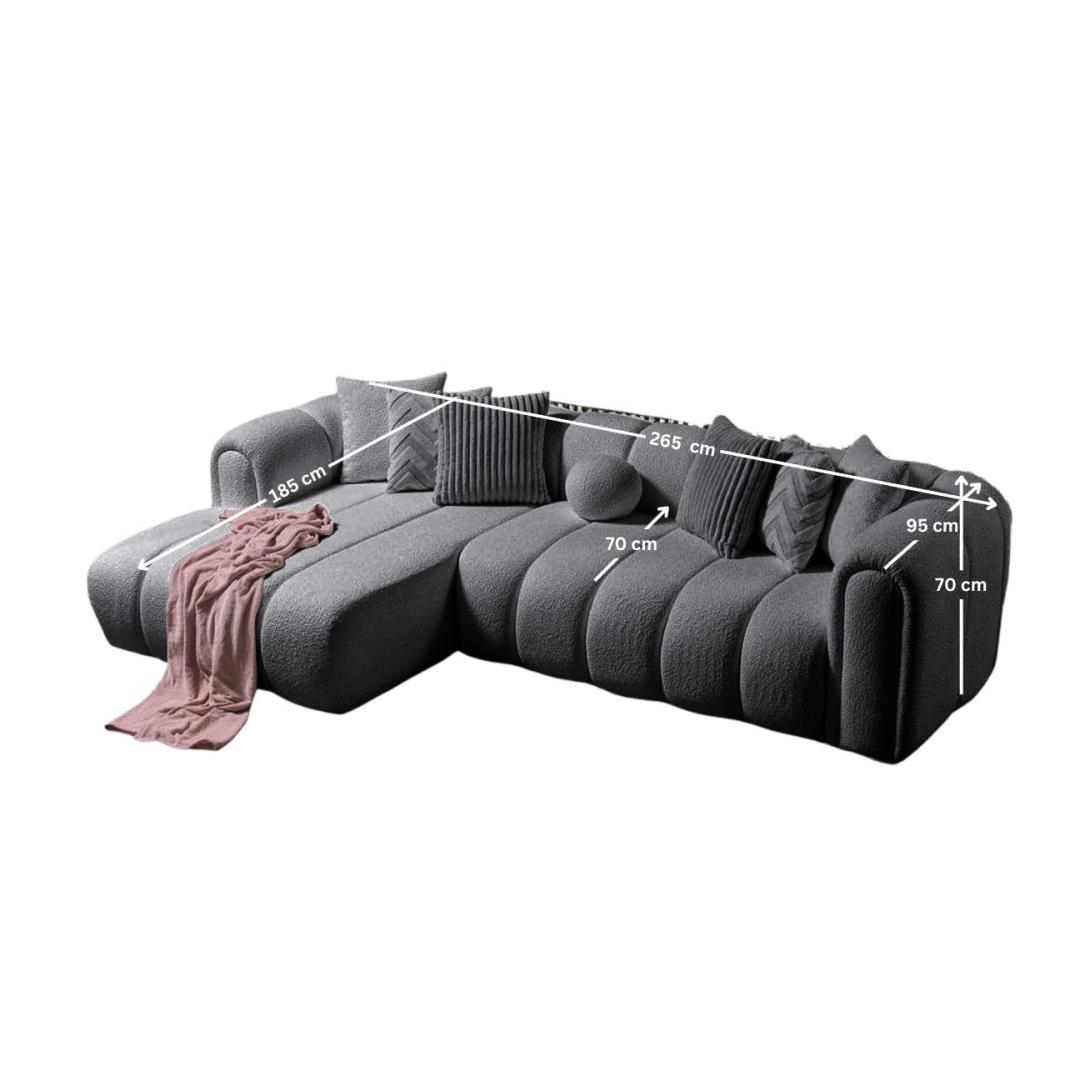 Muuda oma eluruum meie kauni tumehalliga nurgadiivaniga. See elegantne mööbliese lisab sinu koju mitte ainult stiili, vaid pakub ka mugavust ja funktsionaalsust.Luksuslik MugavusLangeta end pehmetesse 30 DNS vahtkummist padjadesse ja tunne, kuidas päeva stress sulab. Kaasaskantav seljatoepadi võimaldab sul kohandada oma istumiskogemust maksimaalseks lõõgastumiseks.Kaunis DisainSelle nurgadiivani sujuv disain tõstab esile iga ruumi sinu kodus. Moodne tumehall värv lisab elegantsi, samas kui plastjalad tagavad stabiilsuse ja toe.Kergesti Puhastatav KangasValmistatud 100% polüestrist Boucle tekstuuriga, on see diivan mitte ainult stiilne, vaid ka kergesti puhastatav. Lihtsalt pühkige plekid ja tilgad niiske lapiga, et hooldus oleks vaevatu.Generoosne SuurusLaienedes 265 x 185 cm, pakub see diivan piisavalt istumiskohta sulle ja sinu külalistele. 7 kaasasolevat patja lisavad lisamugavust ja stiili sinu elutuppa.Uuenda oma eluruumi meie tumehalliga nurgadiivaniga ja koge stiili, mugavuse ja funktsionaalsuse täiuslikku segu. Tellige oma täna ja muuda oma kodu hubaseks pelgupaigaks.Tehnilised Andmed:Raam: 70% PÄRNUMEES / 30% MELAMIINIGA KAETUD KIPSPLAATKangas: 100% POLÜESTER (Boucle tekstuur)PlastjaladKaasaskantav seljatoepadiVahtkummi kõrgus: 20 cmLaius: 265 x 185 cm Kõrgus: 70 cm Sügavus: 95 cmKäetoe kõrgus: 70 cmJala kõrgus: 1,5 cmKandevõime: 240 kgVärv: Tumehall Värv: Dark Grey