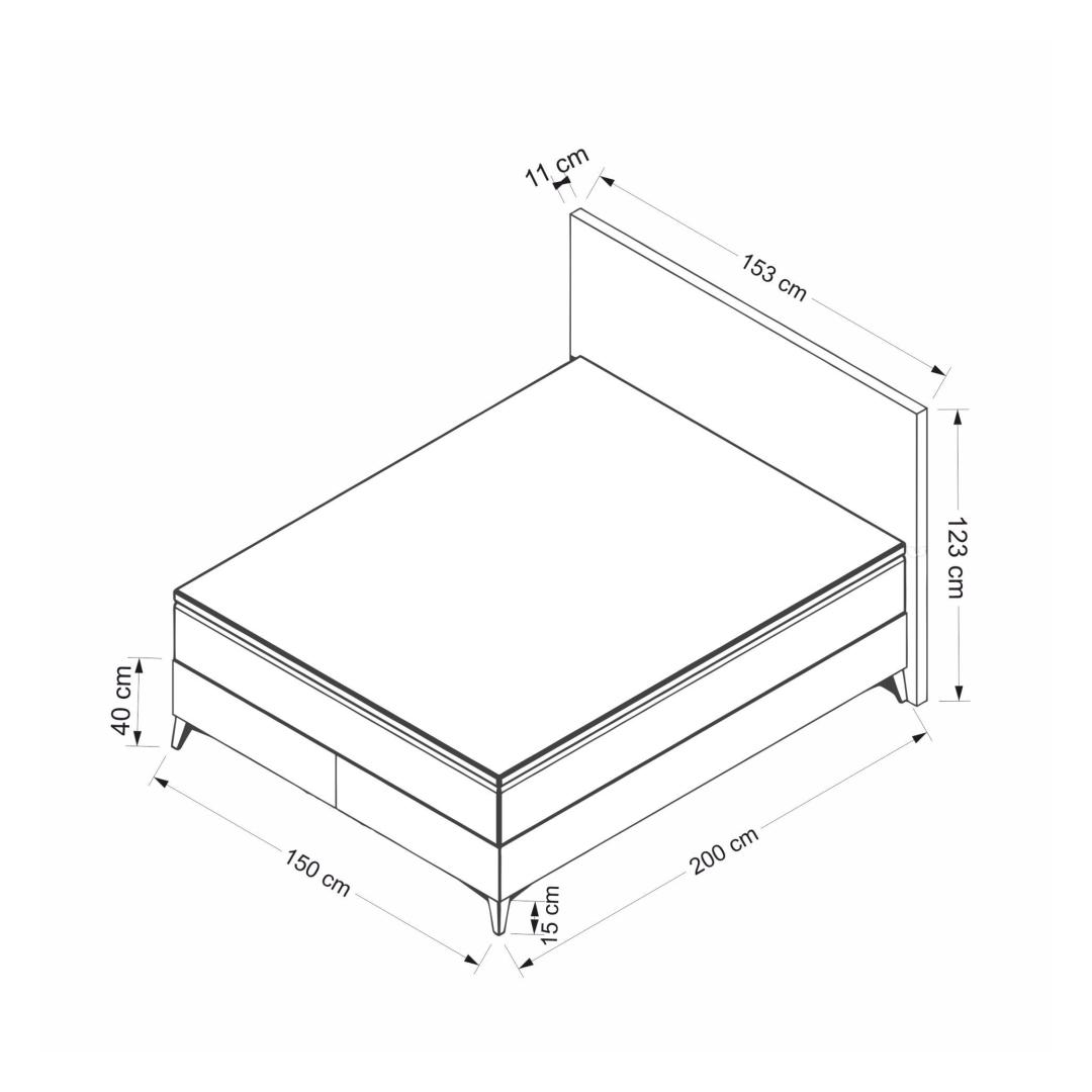 Bed Base: Width: 150 cm Height: 40 cm Depth: 200 cm