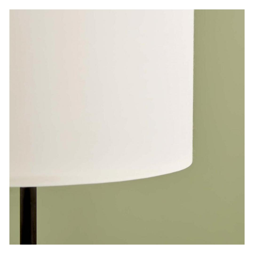 The sleek metal frame combined with the fabric shade exudes sophistication and style. The contrast of the white and black colors adds a modern touch to any decor, making it a versatile piece that will complement any room.