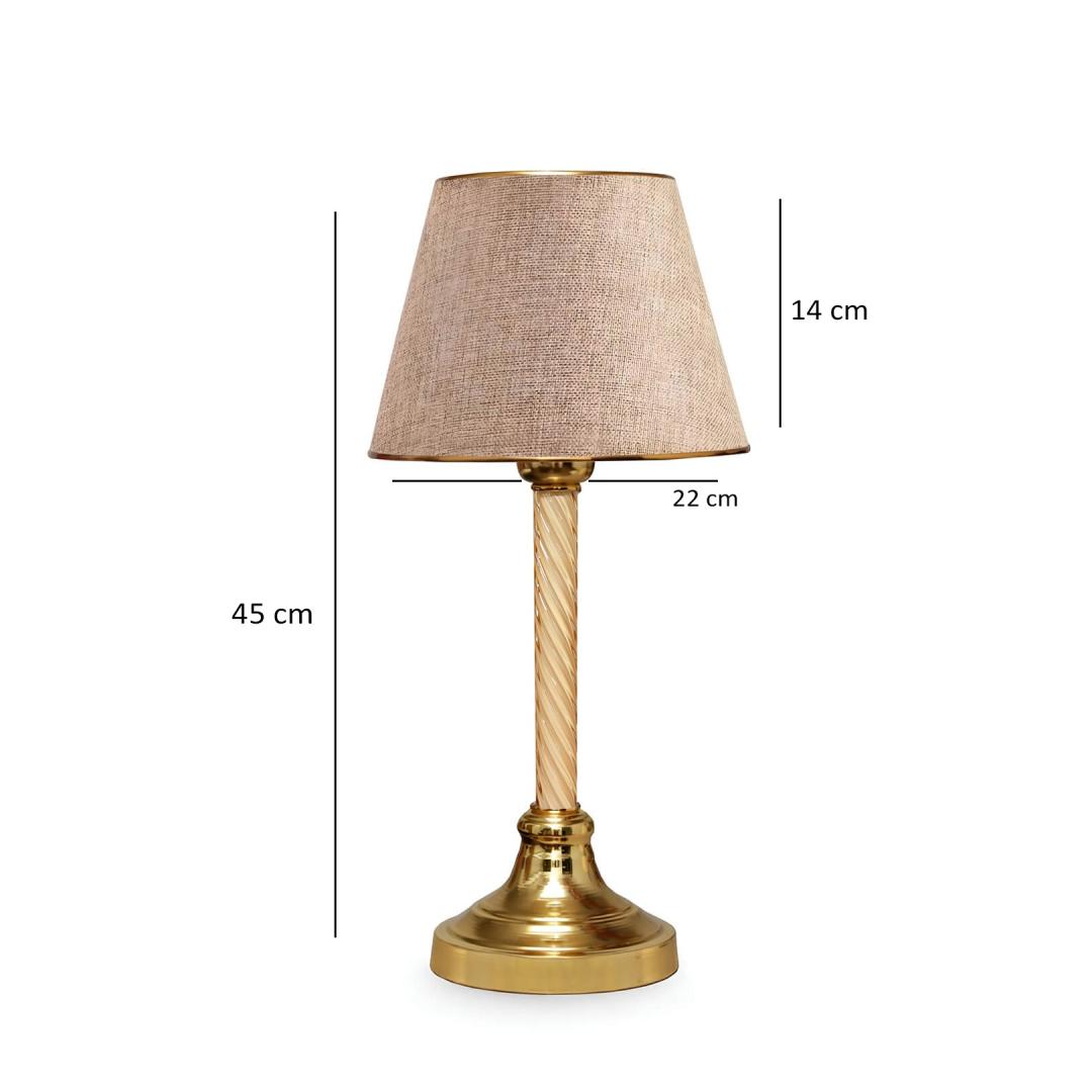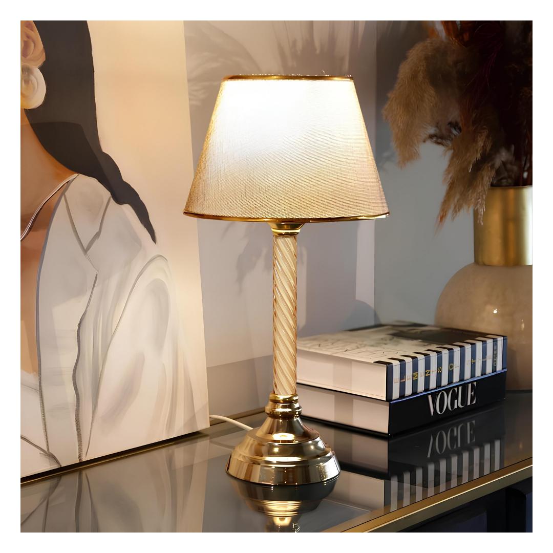 Illuminate your space with elegance and style with our stunning Table Lamp. The combination of the 100% plastic fabric cap and metal base creates a luxurious look that will elevate any room in your home. The beige and gold colors add a touch of glamour, making this lamp a statement piece in any decor.