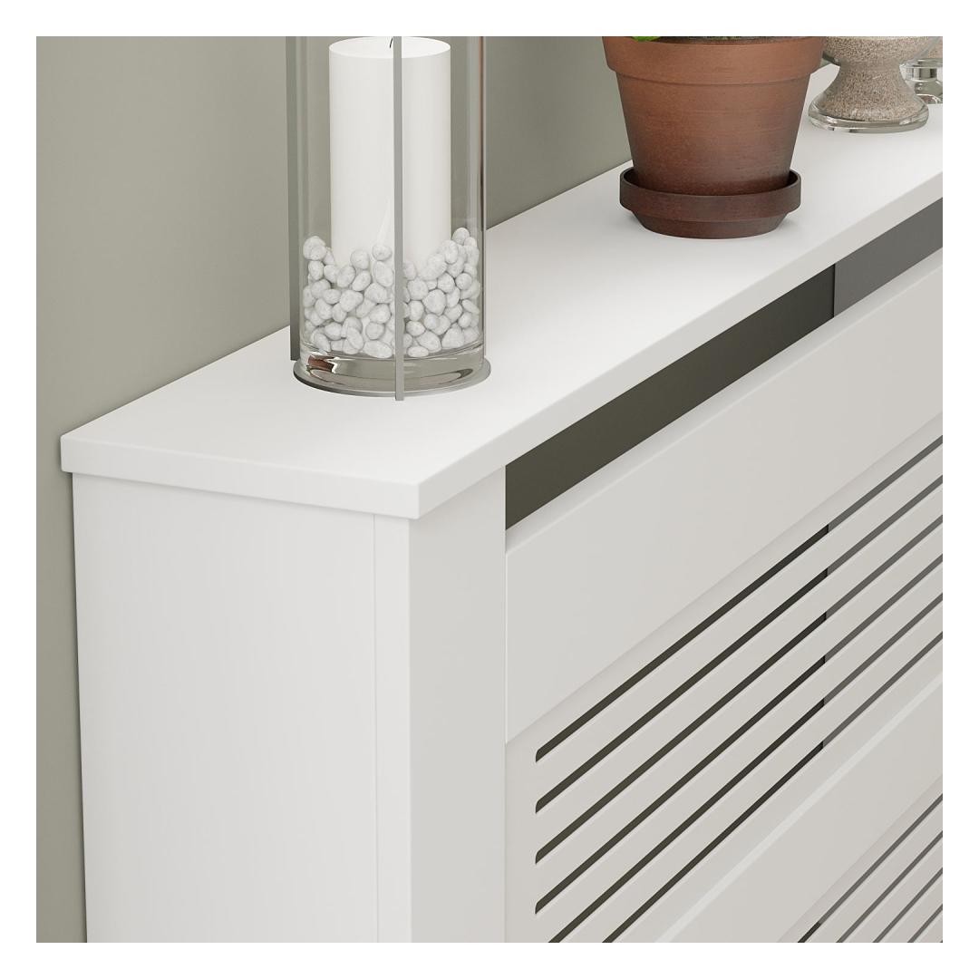 The sleek design of our Radiator Cabinet will instantly upgrade the look of your home. Its clean lines and white finish will seamlessly blend in with any decor style, whether modern or traditional. Add a touch of elegance to your living room, bedroom, or hallway with this versatile piece.