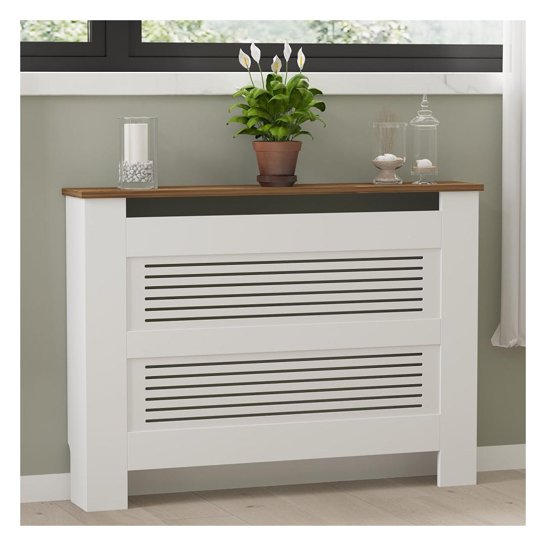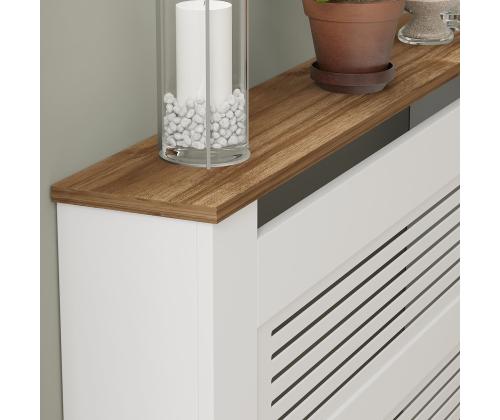 With dimensions of 112 cm in width, 82 cm in height, and 30 cm in depth, this radiator cabinet is the perfect size for most standard radiators. It provides additional surface area for displaying photos, plants, or other decorative items, helping you make the most of your living space.