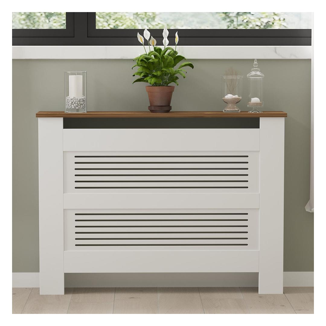 The sleek design of this radiator cabinet adds a touch of sophistication to any room. The walnut and white color combination complements a variety of interior styles, making it a versatile and timeless piece for your home.